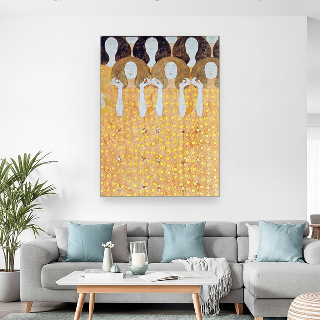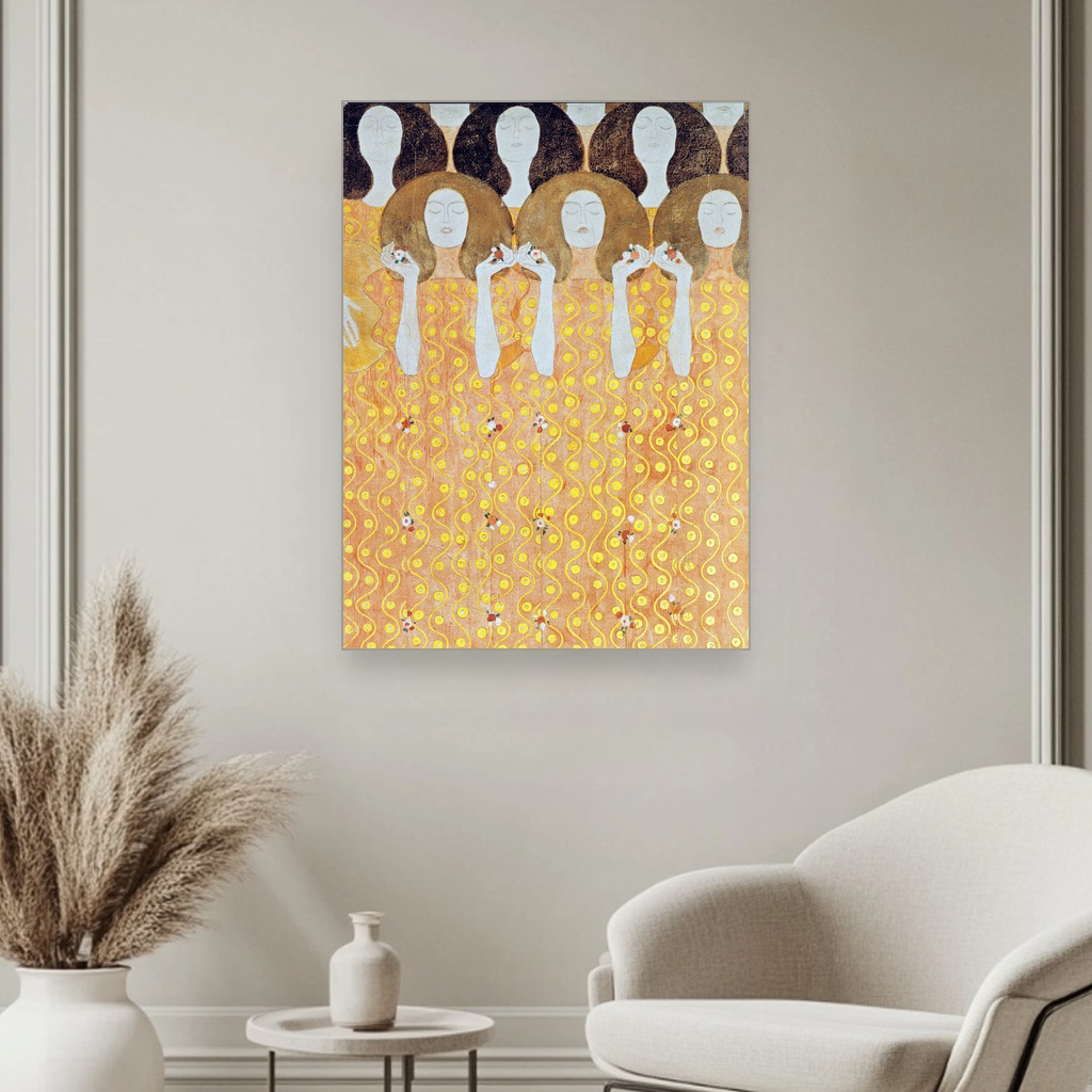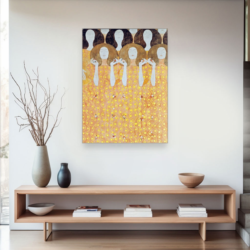 Beethoven friza, Gustav Klimt, Beethoven Frieze je canvas slika koja na jedinstven način spaja mitsku simboliku i umetnički izraz kroz slojevitu kompoziciju.