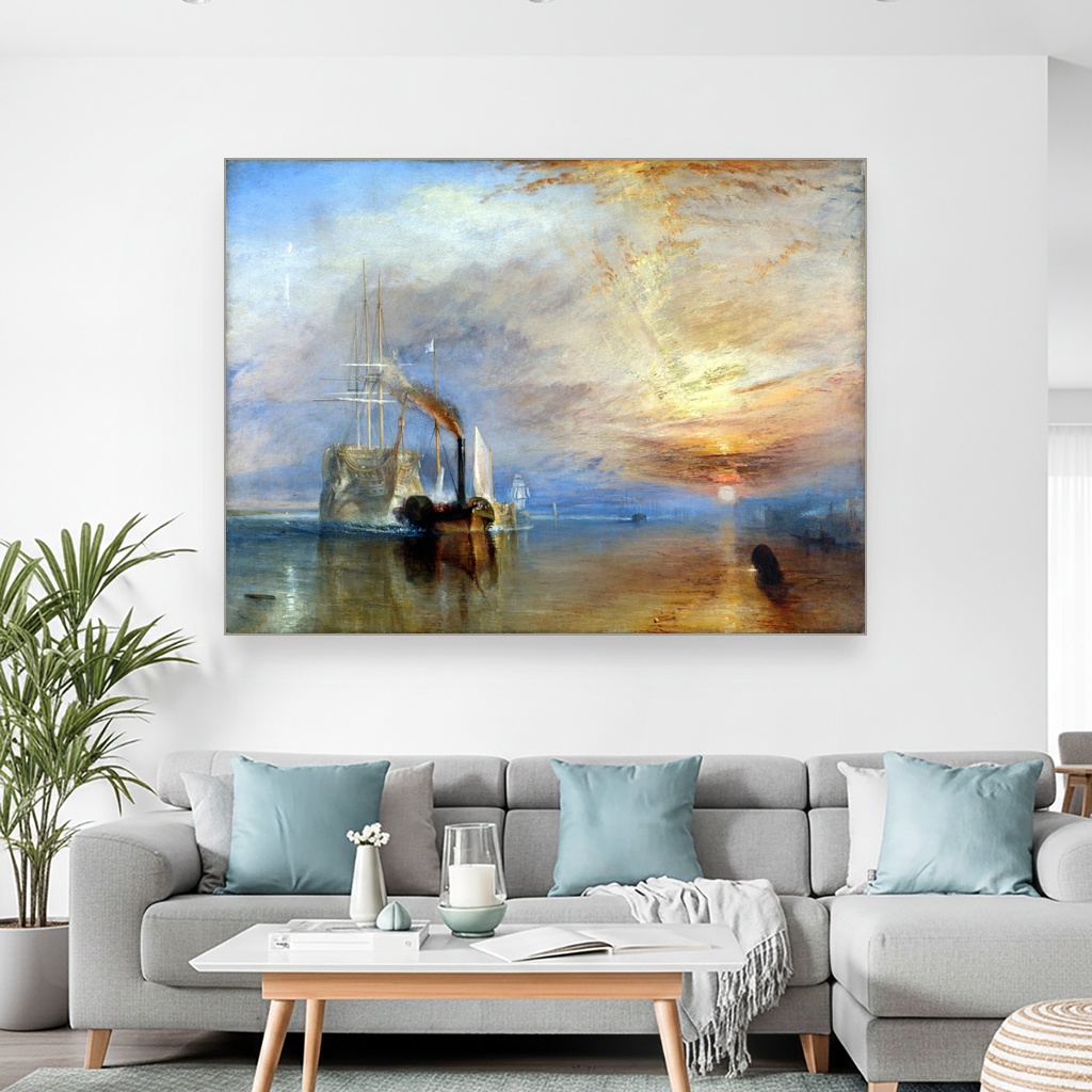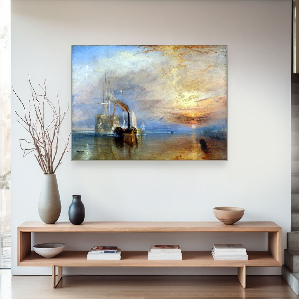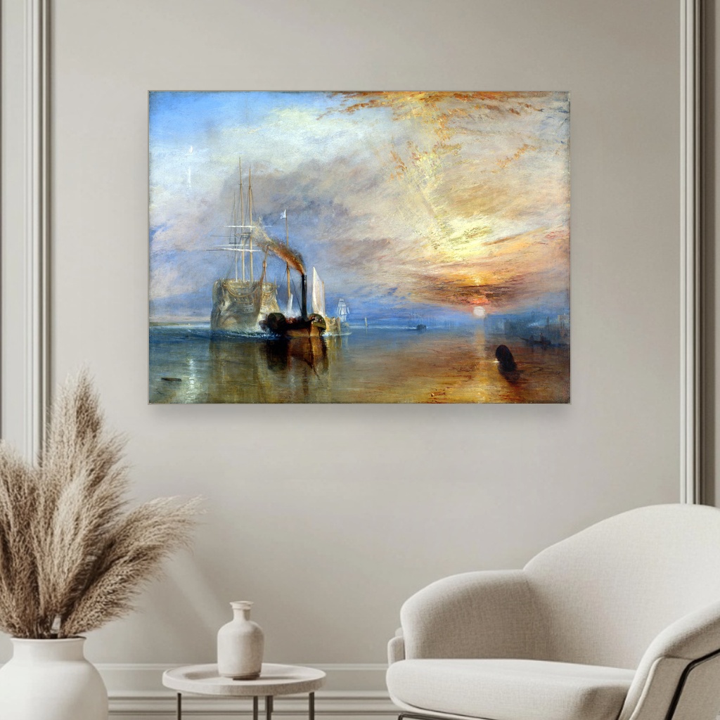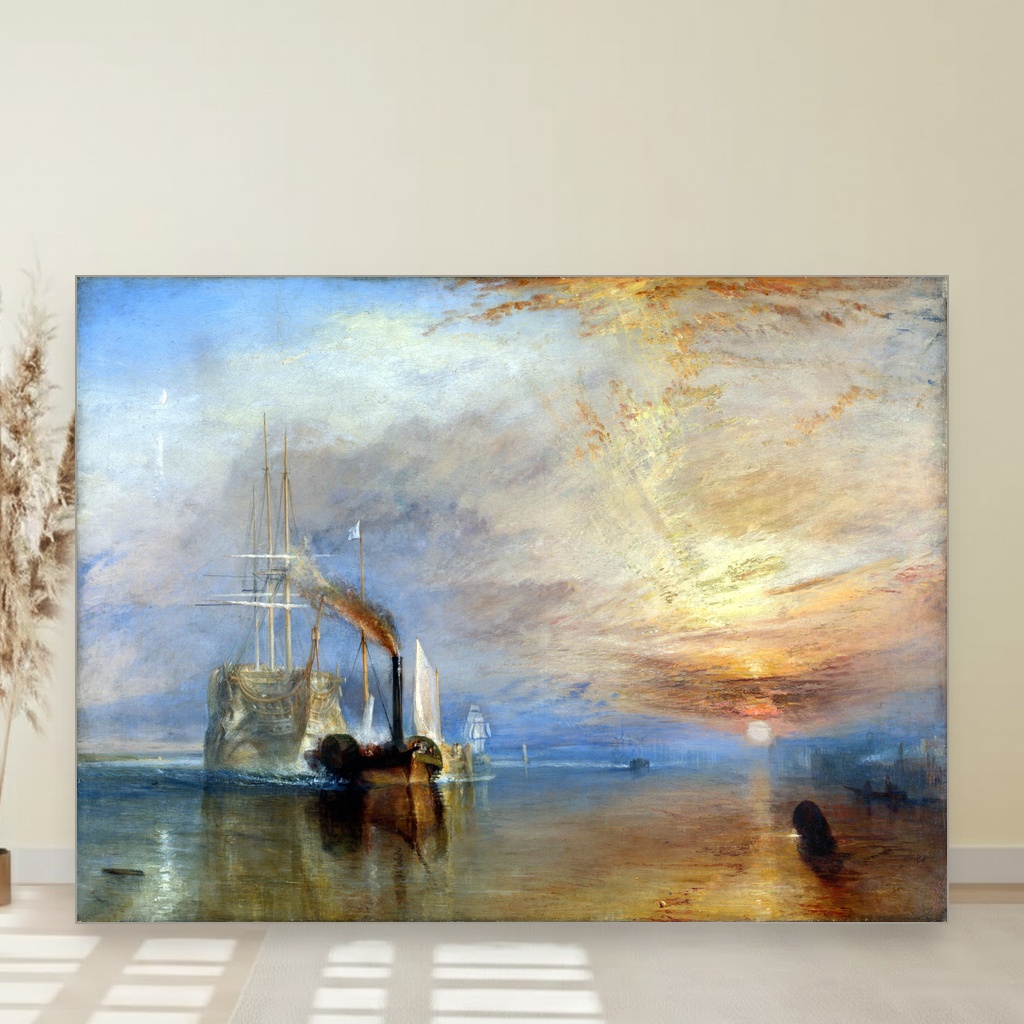 Turner, The Fighting Temeraire tugged to her last berth to be broken up, slika na platnu reprodukcija slike na platnu predstavlja emotivan susret prošlosti i sadašnjosti kroz remek-delo jednog od najznačajnijih umetnika romantizma.