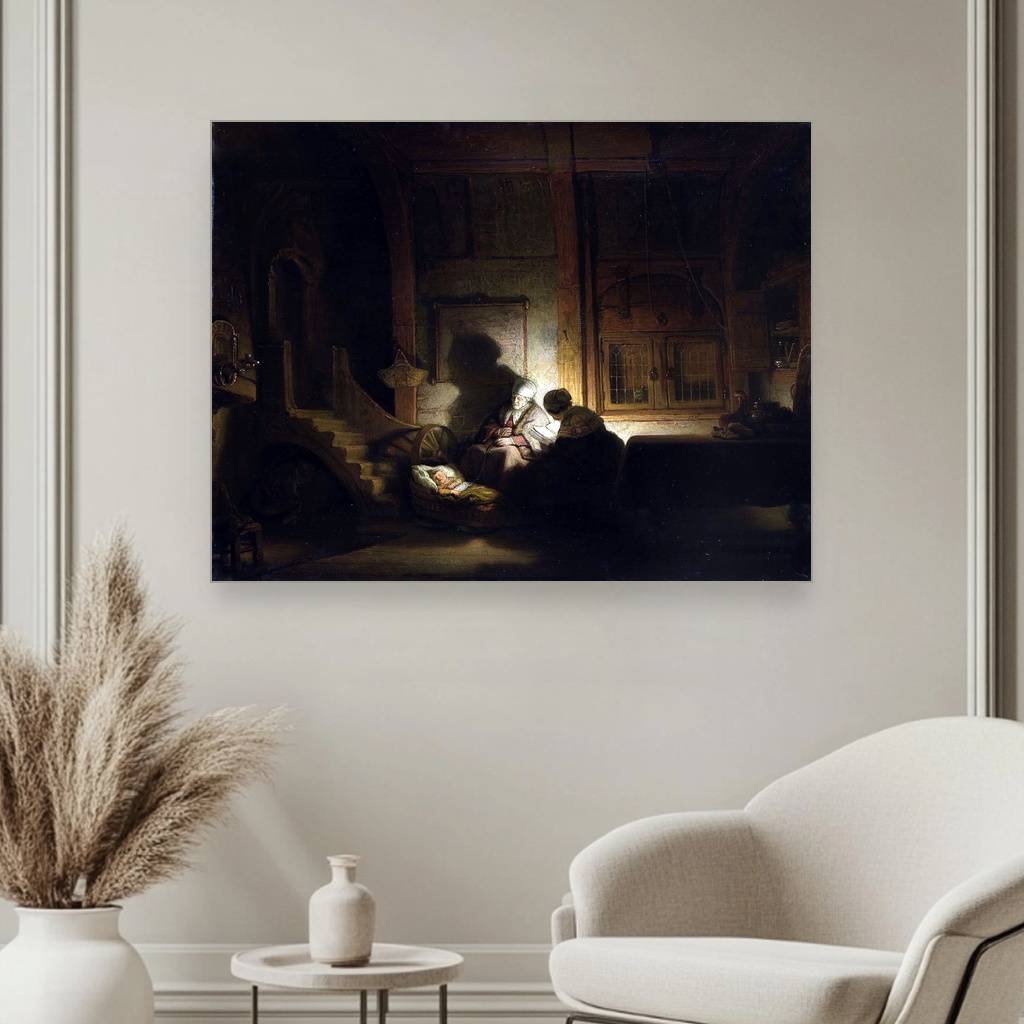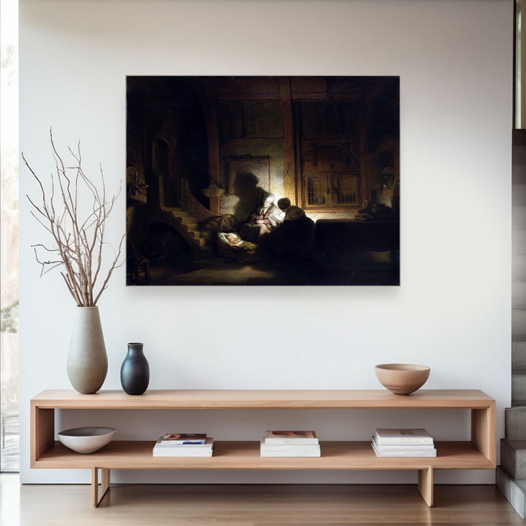 Sveta porodica noću ostaje neizbrisiv pečat umetničke istorije, a ova umetnička reprodukcija savršeno se uklapa u ambijent modernog doma.