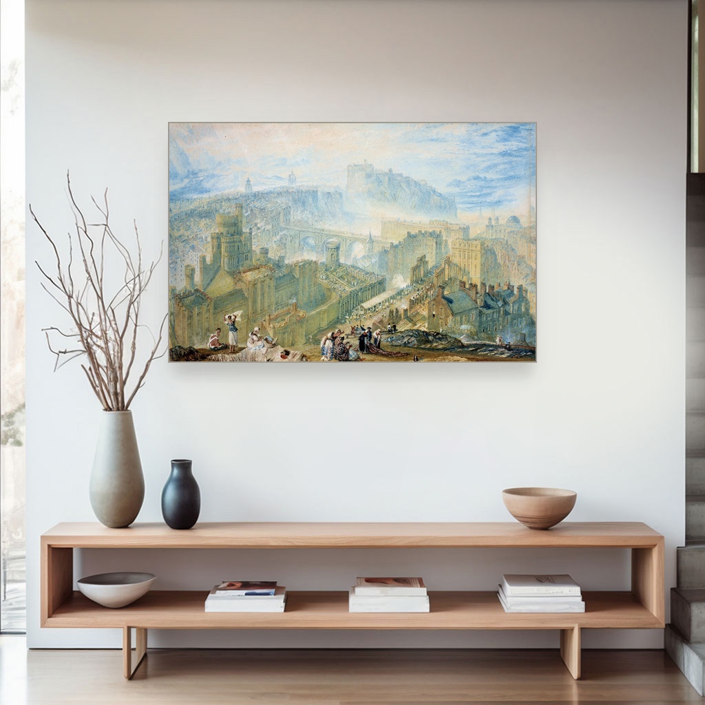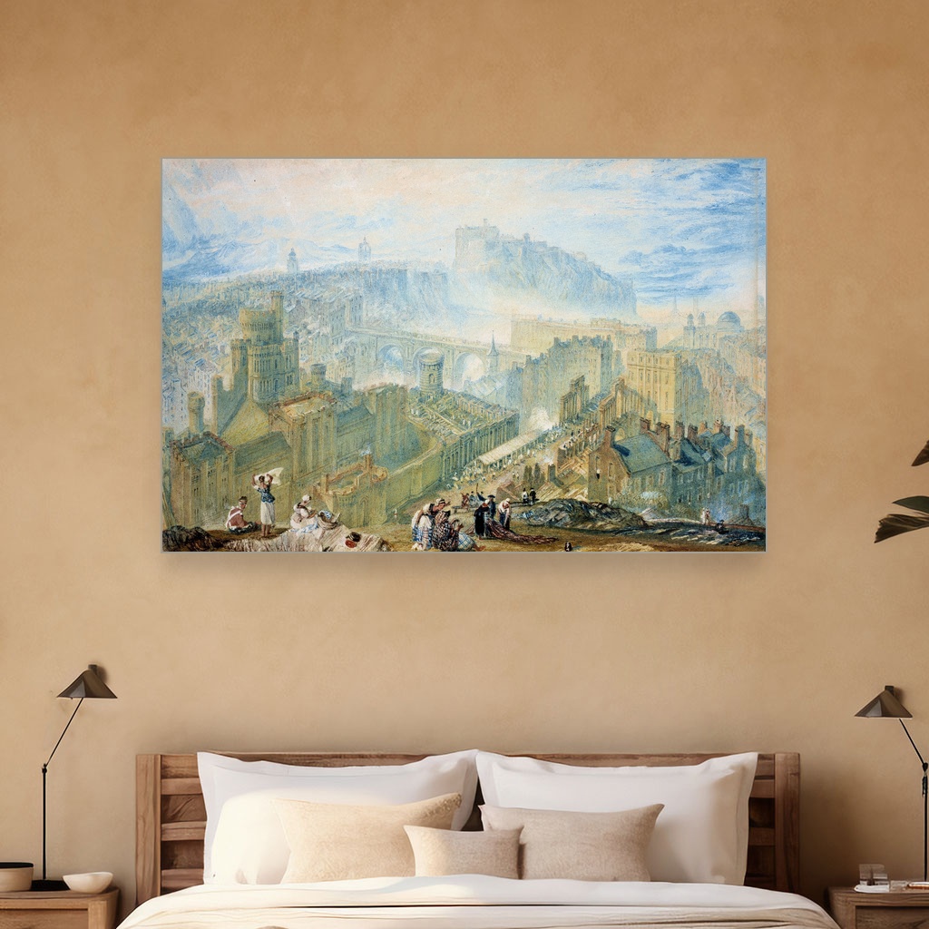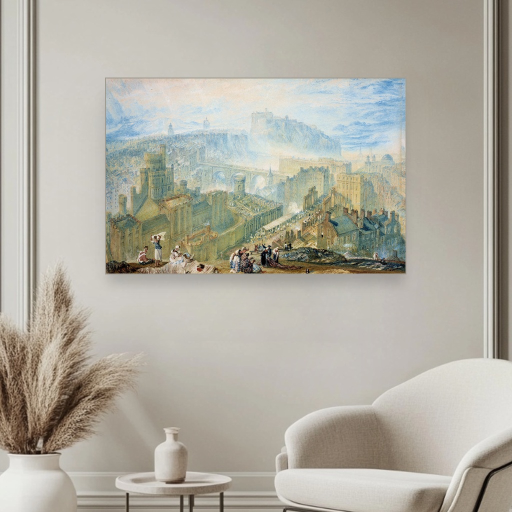 Edinburg sa Kalton Hila, J M W Turner, Edinburgh from Calton Hill, slika na platnu predstavlja remek-delo umetničke reprodukcije koje oživljava magičan susret svetlosti i pejzaža glavnog škotskog grada.