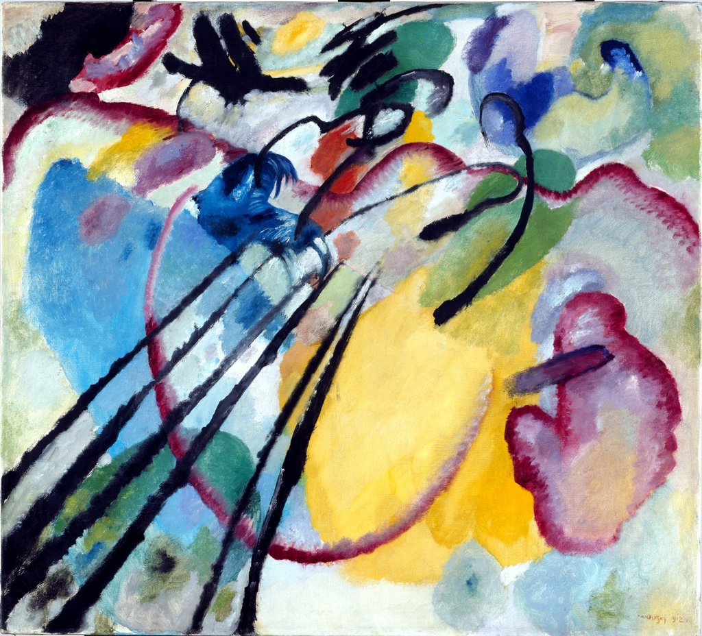 Kandinsky je kroz ovu kompoziciju istraživao neuhvatljive emocije i pokrete koristeći improvizovane linije i boje koje deluju kao da plešu na platnu.