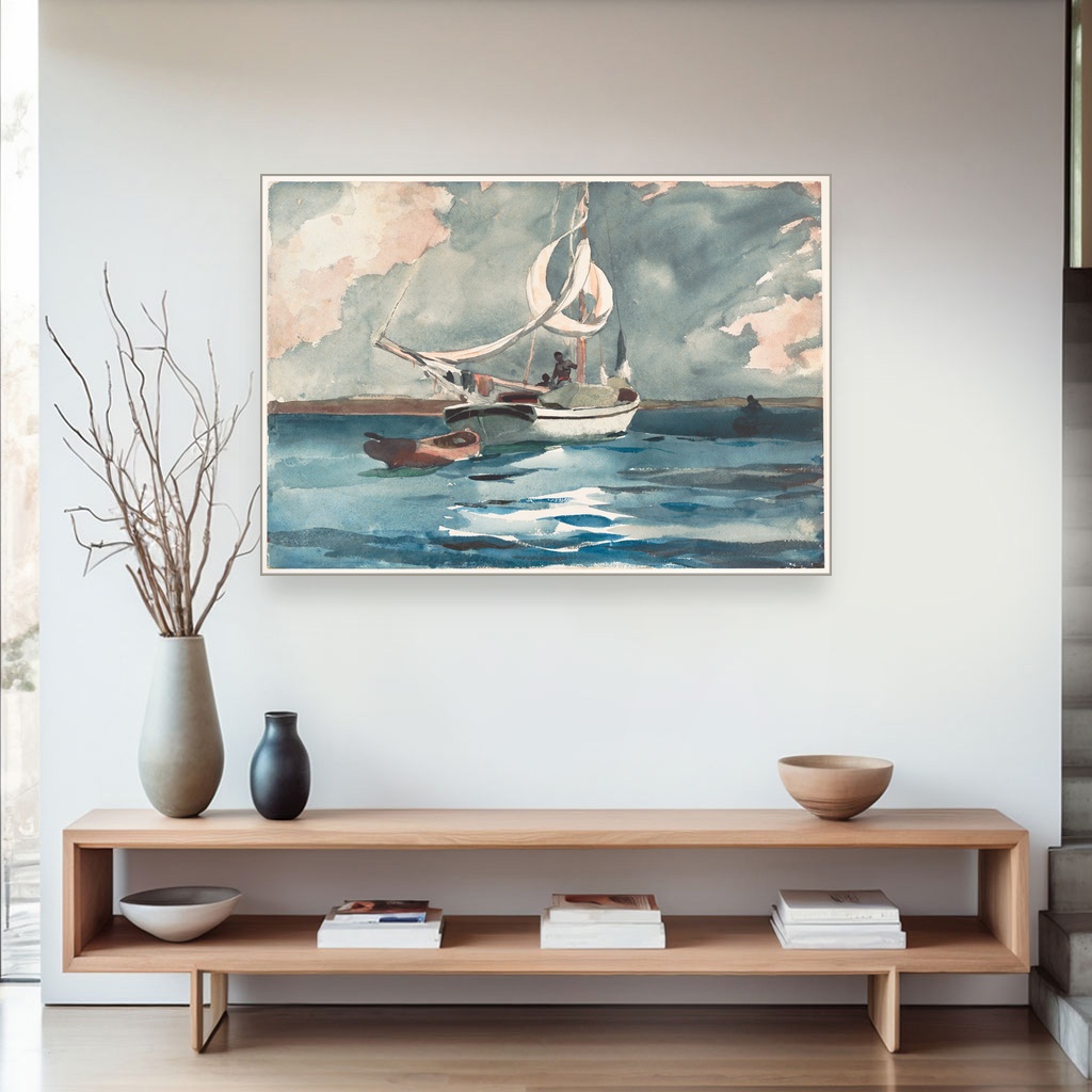 Jedrilica u Nasu, Winslow Homer, Sloop Nassau, slika na platnu predstavljaju spoj istorije i umetničke tehnike koja osvetljava morske pejzaže sa neodoljivom živopisnošću.