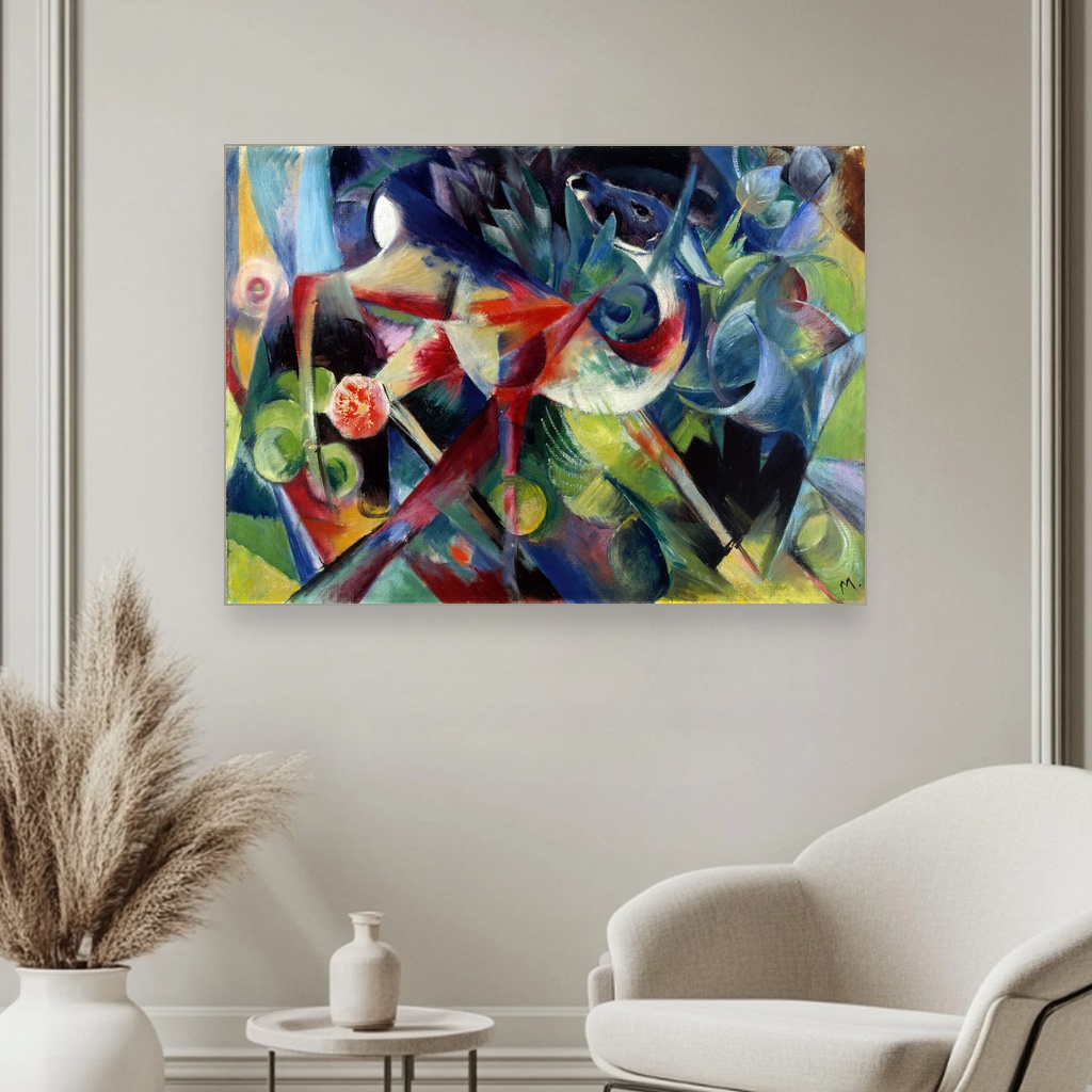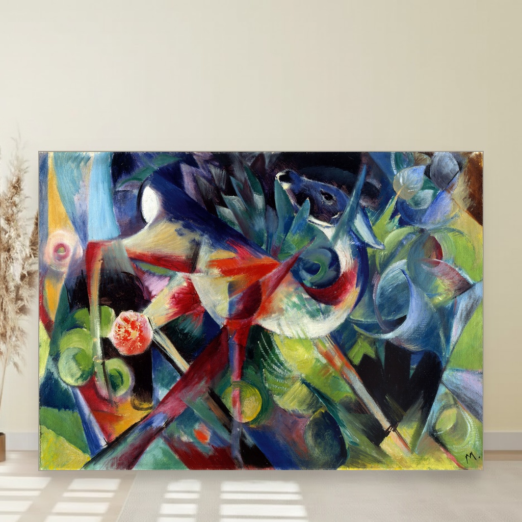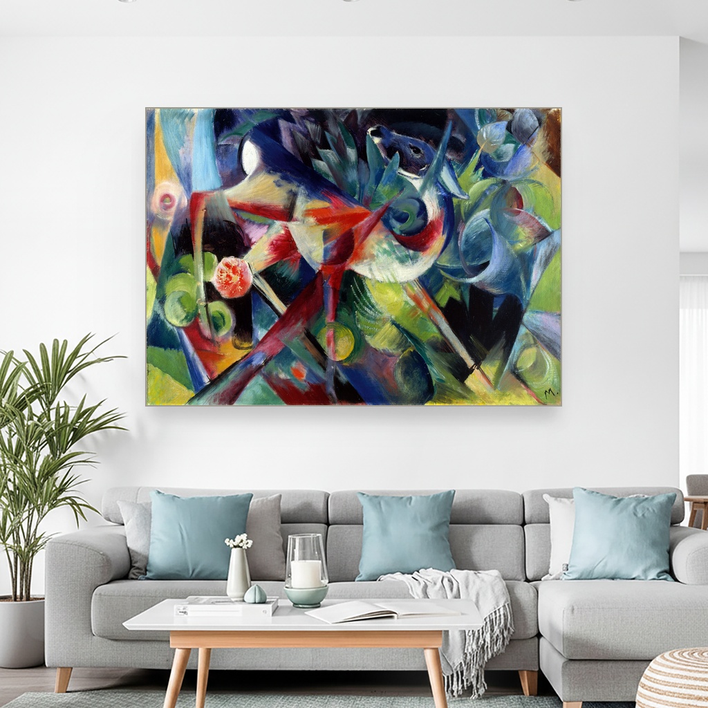 Ova štampa na platnu nosi duh umetničkog pravca slike za zid koji je Marc oblikovao, a koji je ostavio dubok trag u modernoj umetnosti.
