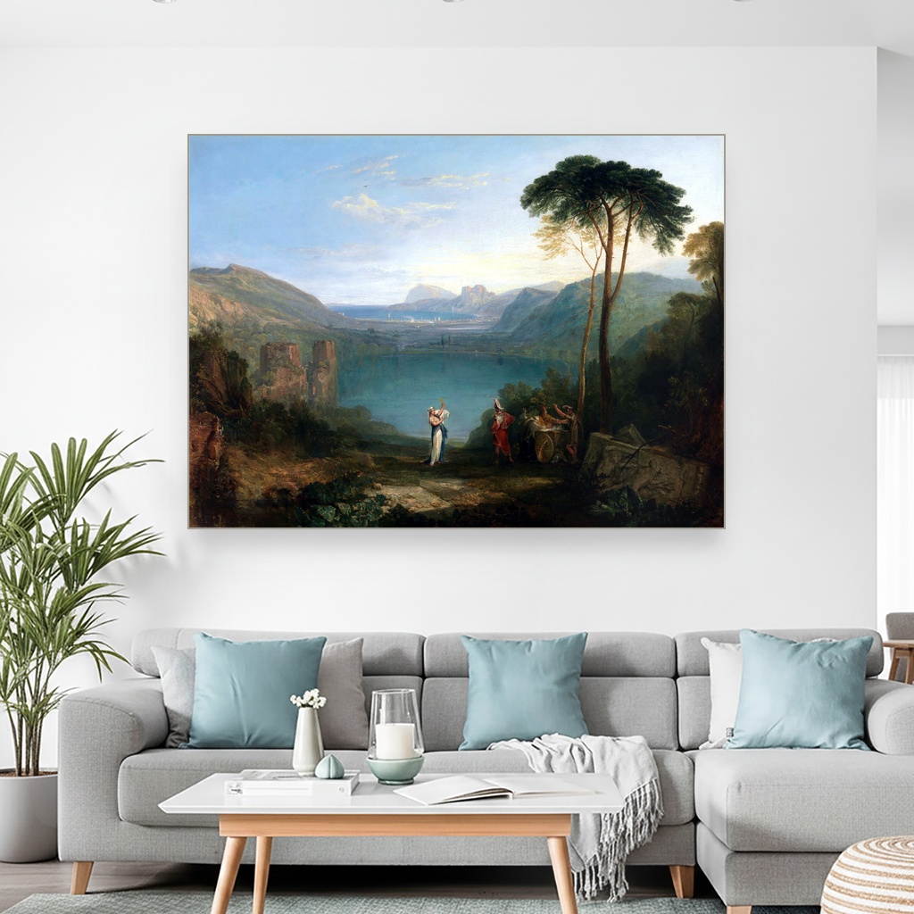 Bilo da uređujete moderan ili klasični stil enterijera, reprodukcija slike na platnu Lake Avernus Aeneas and the Cumaean Sibyl predstavlja elegantan dodatak.