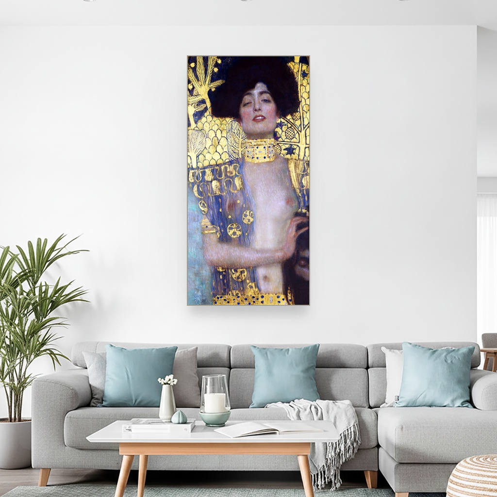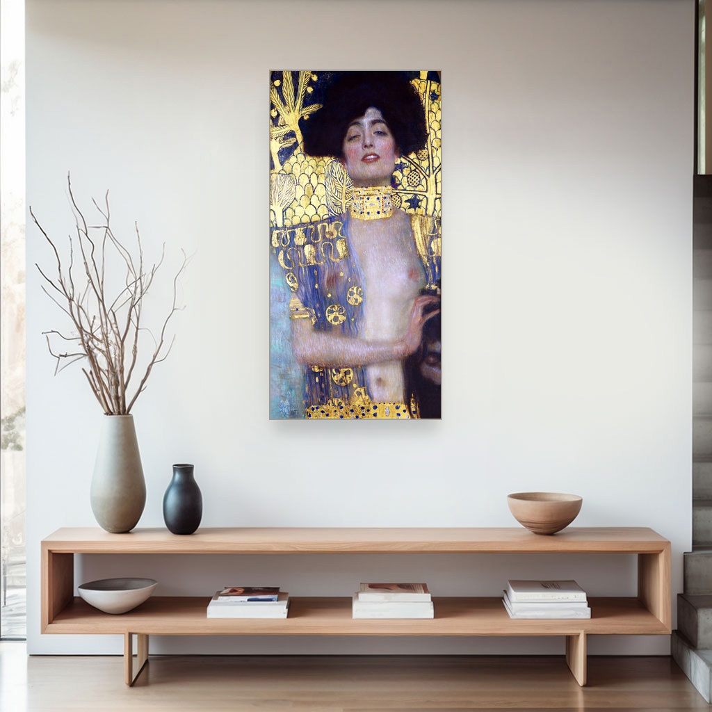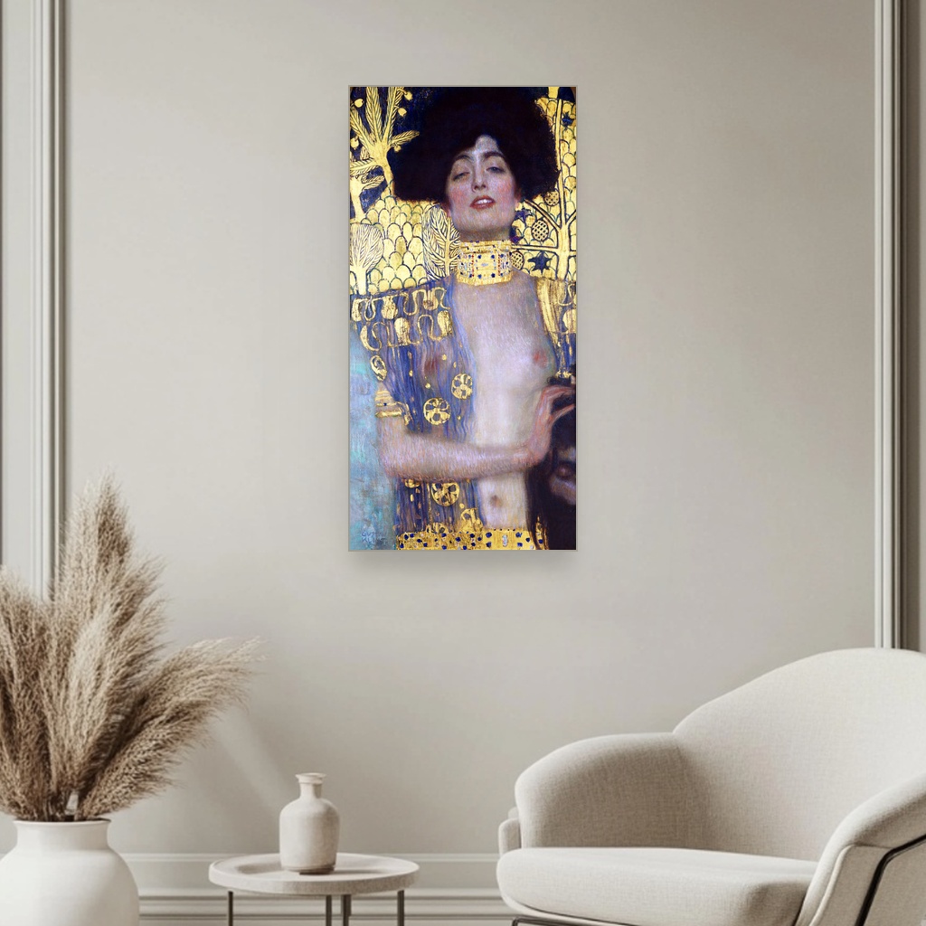 Tehnika štampe na platnu visokog kvaliteta omogućava da svaki detalj, svaki pokret i izraz na licu Judite dobiju novu dimenziju i intenzitet kako bi slika oživela u vašem prostoru.