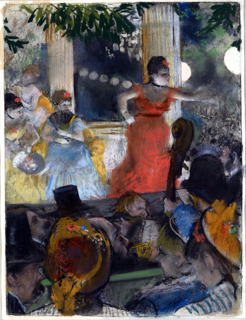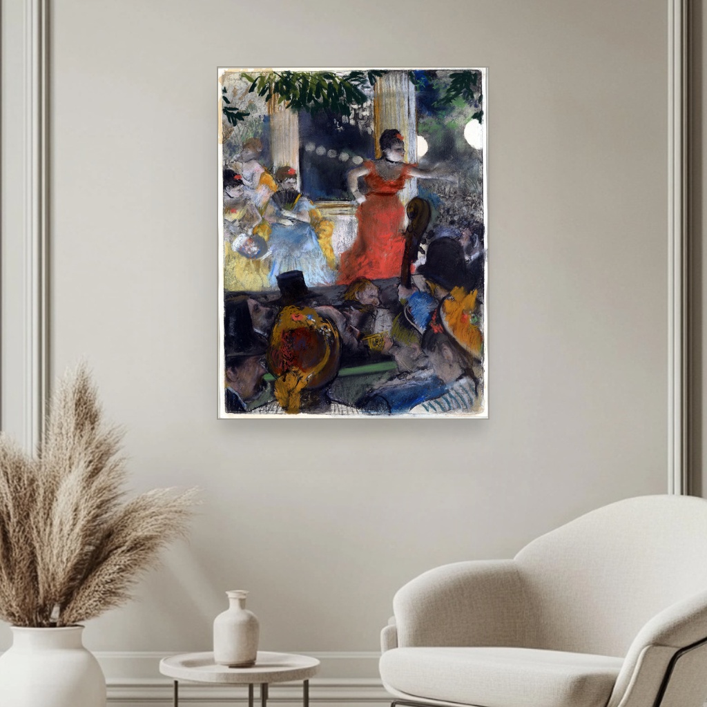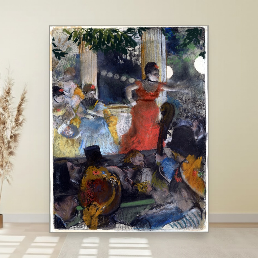 Kafe koncert u Les Ambassadeurs, Edgar Degas, Café-Concert at Les Ambassadeurs, slika na platnu reproducira jednu živopisnu scenu iz pariškog života koja je ostavila dubok trag u umetničkom svetu.