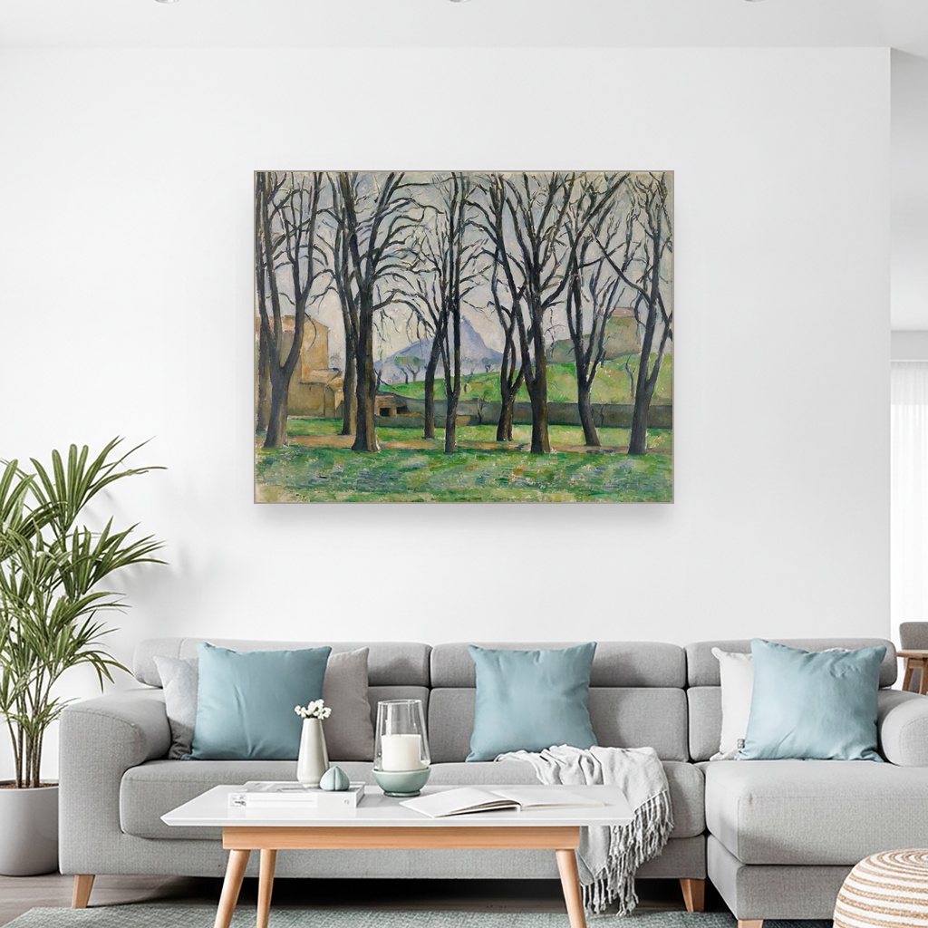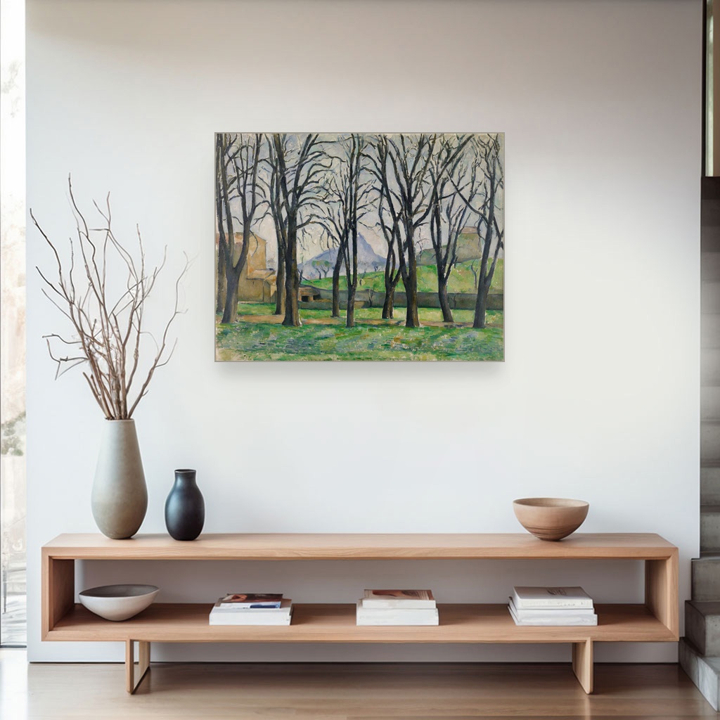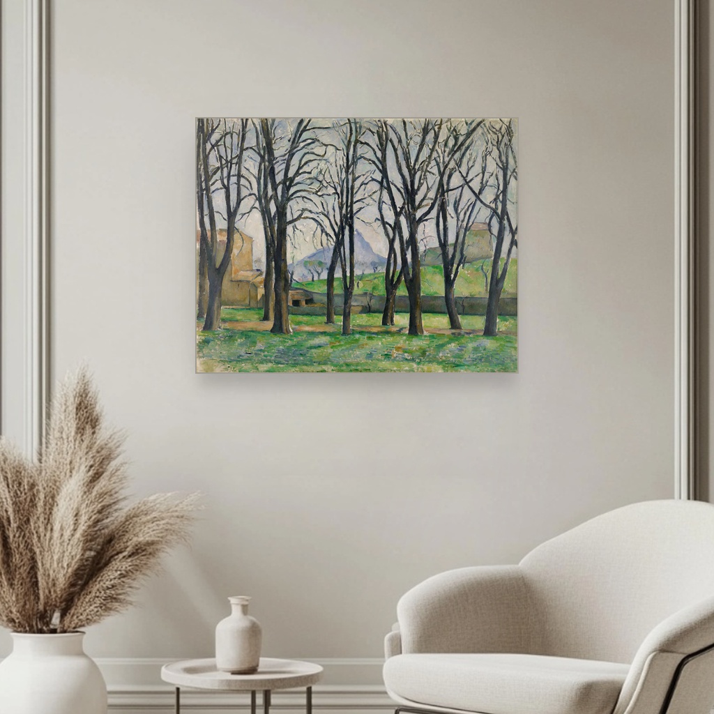 Kestenovi kod Jas de Bufana, Paul Cézanne, Chestnut Trees at Jas de Bouffan, slika na platnu predstavlja dragocenu umetničku reprodukciju na platnu koja nas vodi u srce postimpresionističkog izraza.