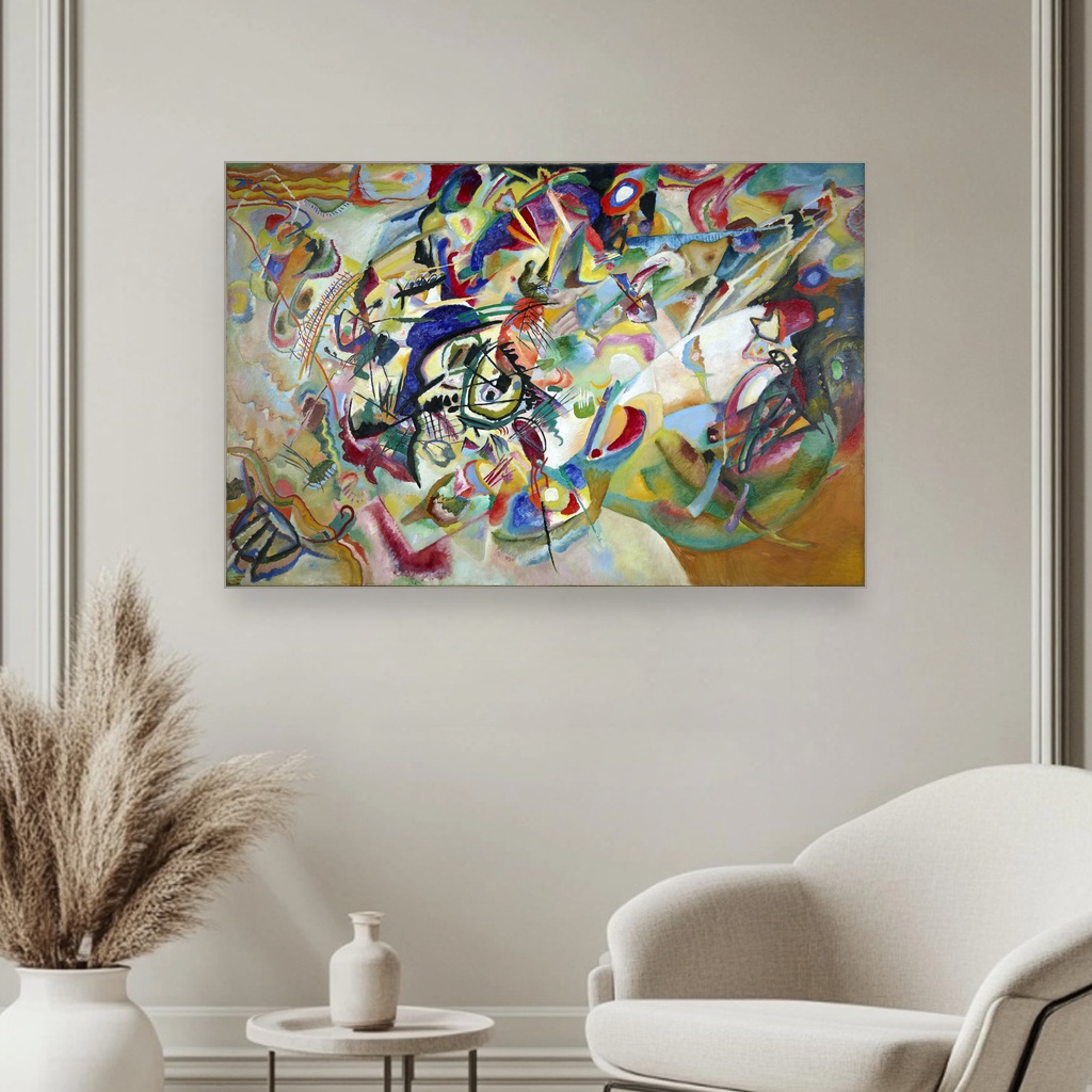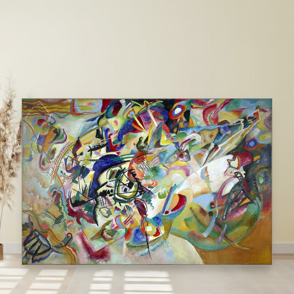 Eksplozija boja i energije u Kompoziciji sedam Vas uvodi u svet apstraktne magije gde svaki potez kista pulsira emocijom. Ova slika savršeno osvežava dnevni boravak ili kreativni kutak, donoseći dinamičnu atmosferu i inspiraciju. Reprodukcija ovog remek-dela Wassilyja Kandinskog oživljava originalnu strast i složenost, čineći je dragocenim ukrasom svakog prostora.