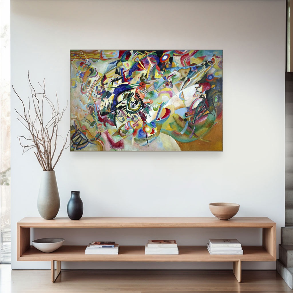 Ova Wassily Kandinsky štampa na platnu muzejskog kvaliteta predstavlja savršen primer kako apstraktna umetnost iz ranog 20. veka može biti interpretirana i danas.