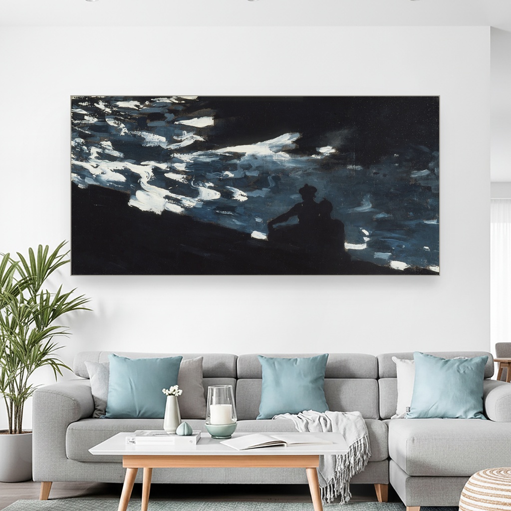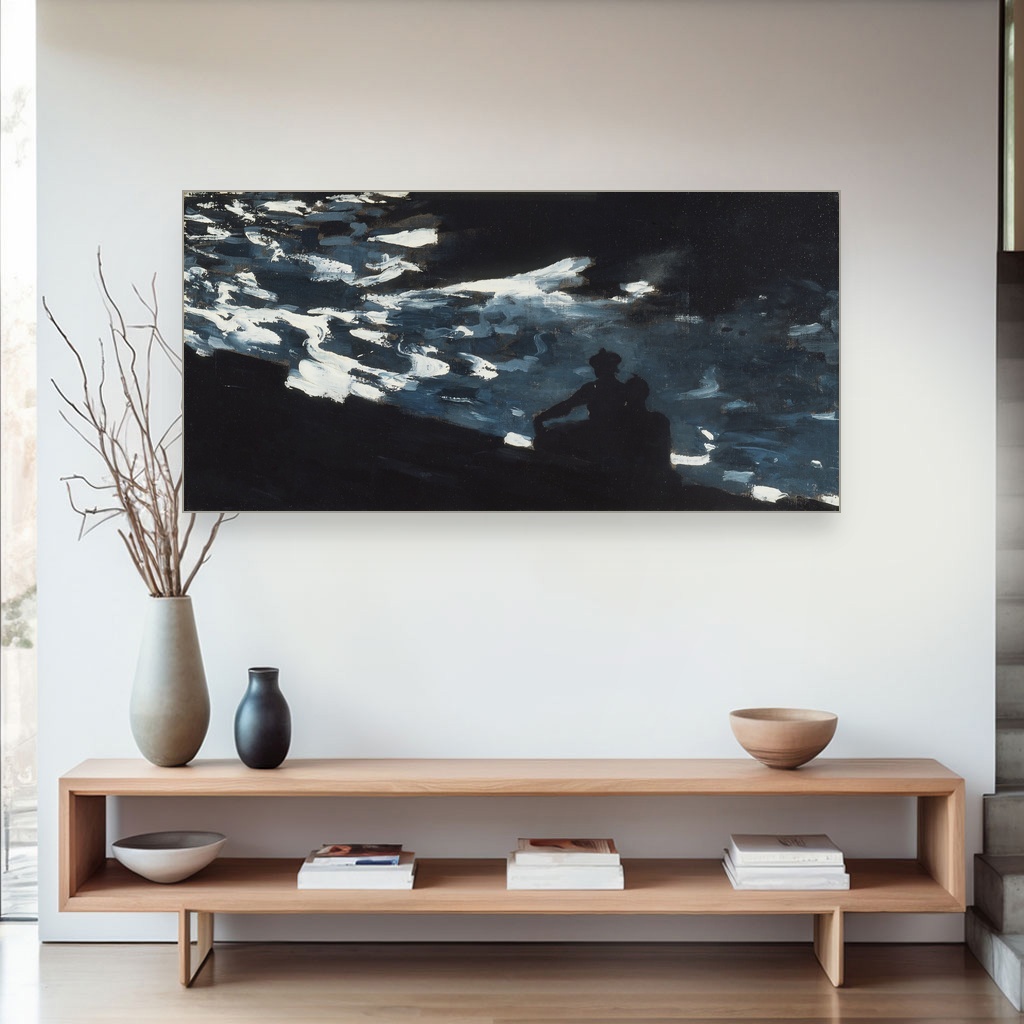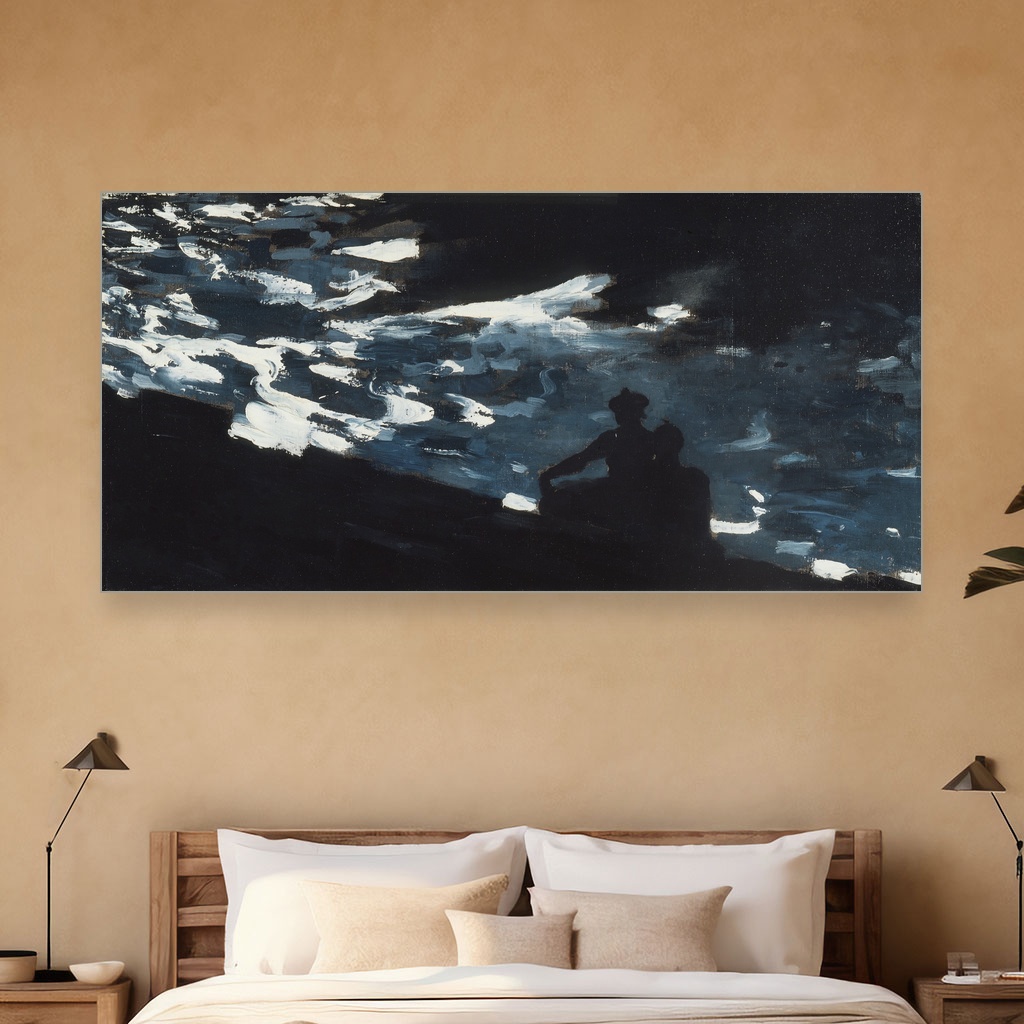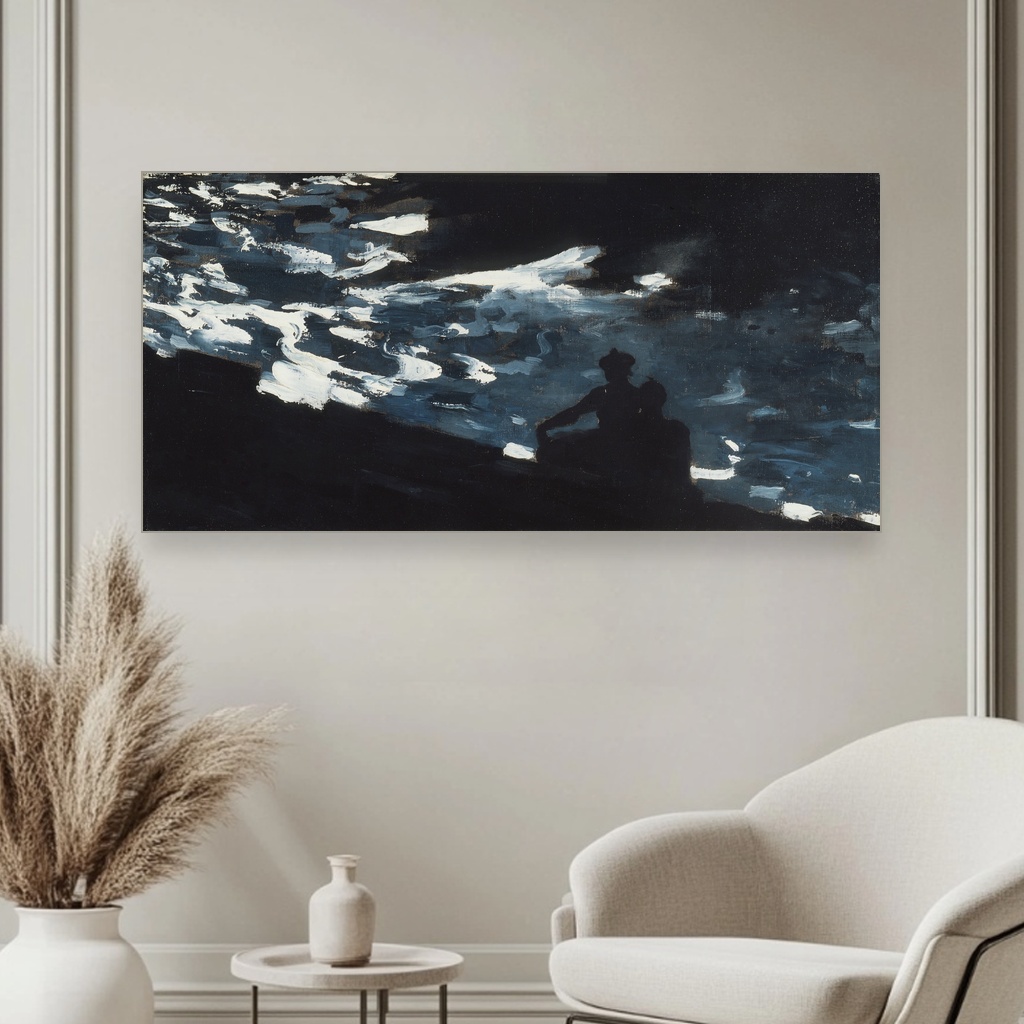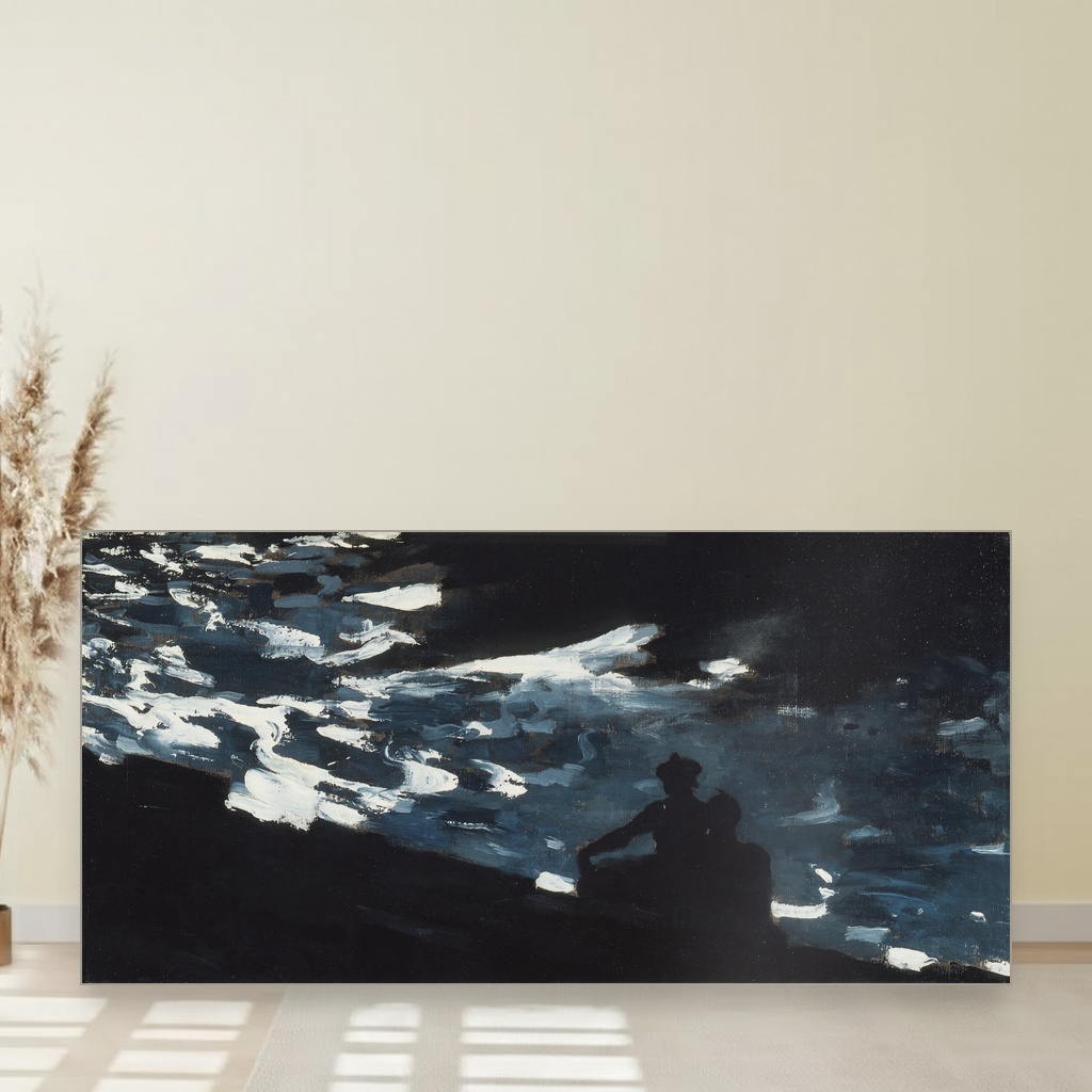 Mesečina na vodi, Winslow Homer, Moonlight on the Water, slika na platnu, otkriva nam nežnu igru svetlosti i tame kroz umetnički pravac slika na platnu karakterističan za kasni 19. vek.