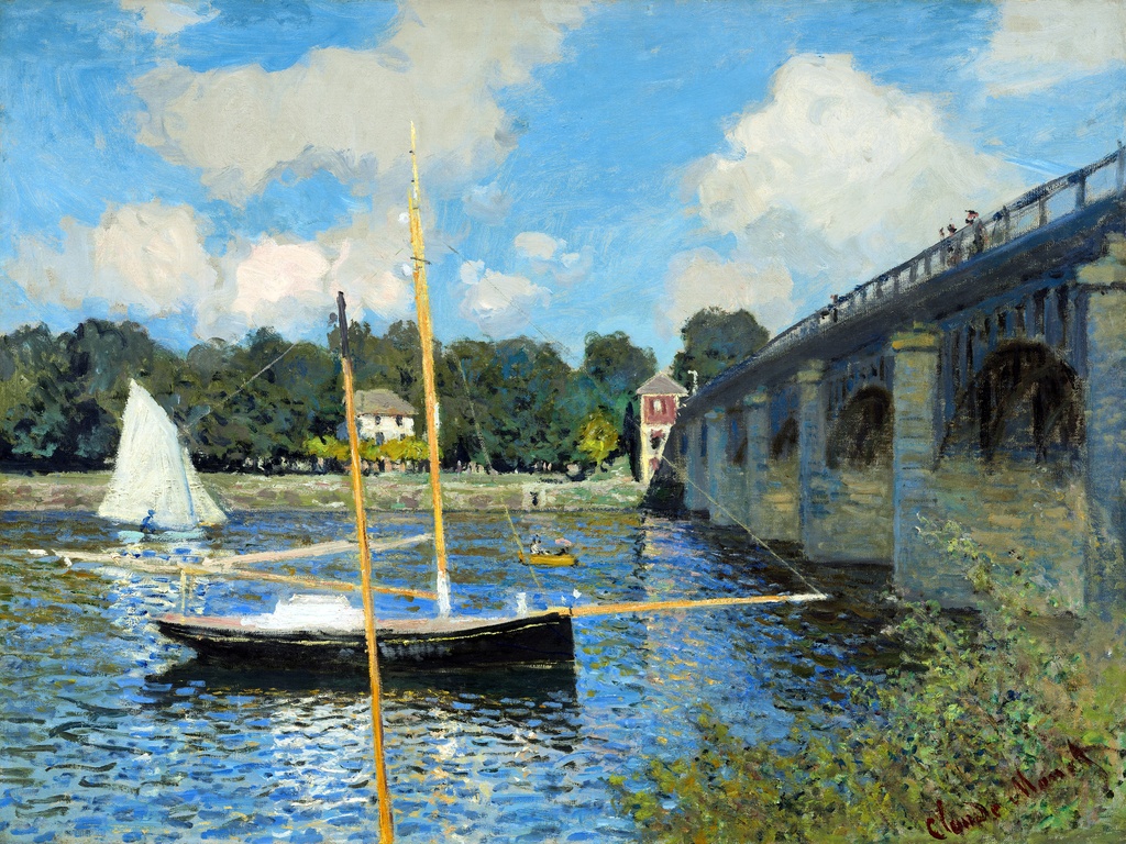 Most u Aržanteju, Klod Mone, The Bridge at Argenteuil, slika na platnu, zrači posebnom energijom koja nas vraća u srce impresionizma.