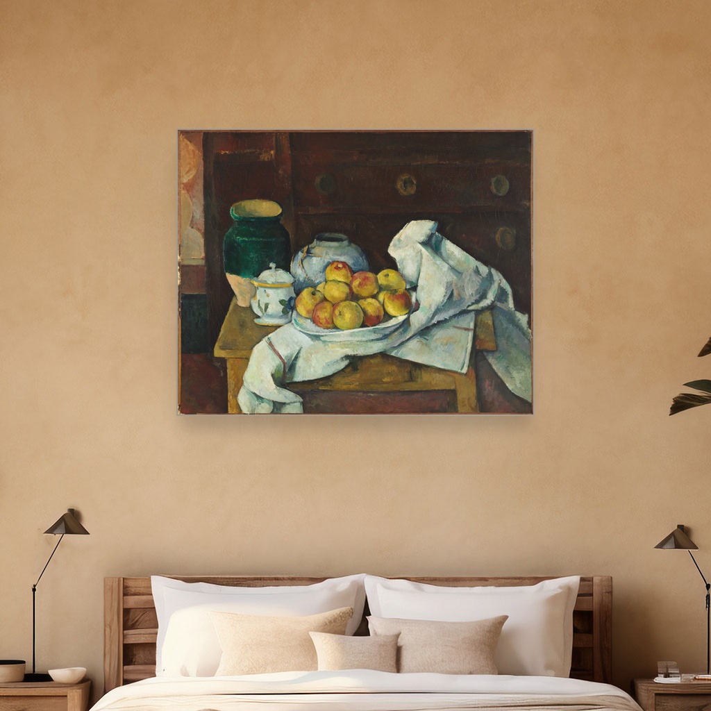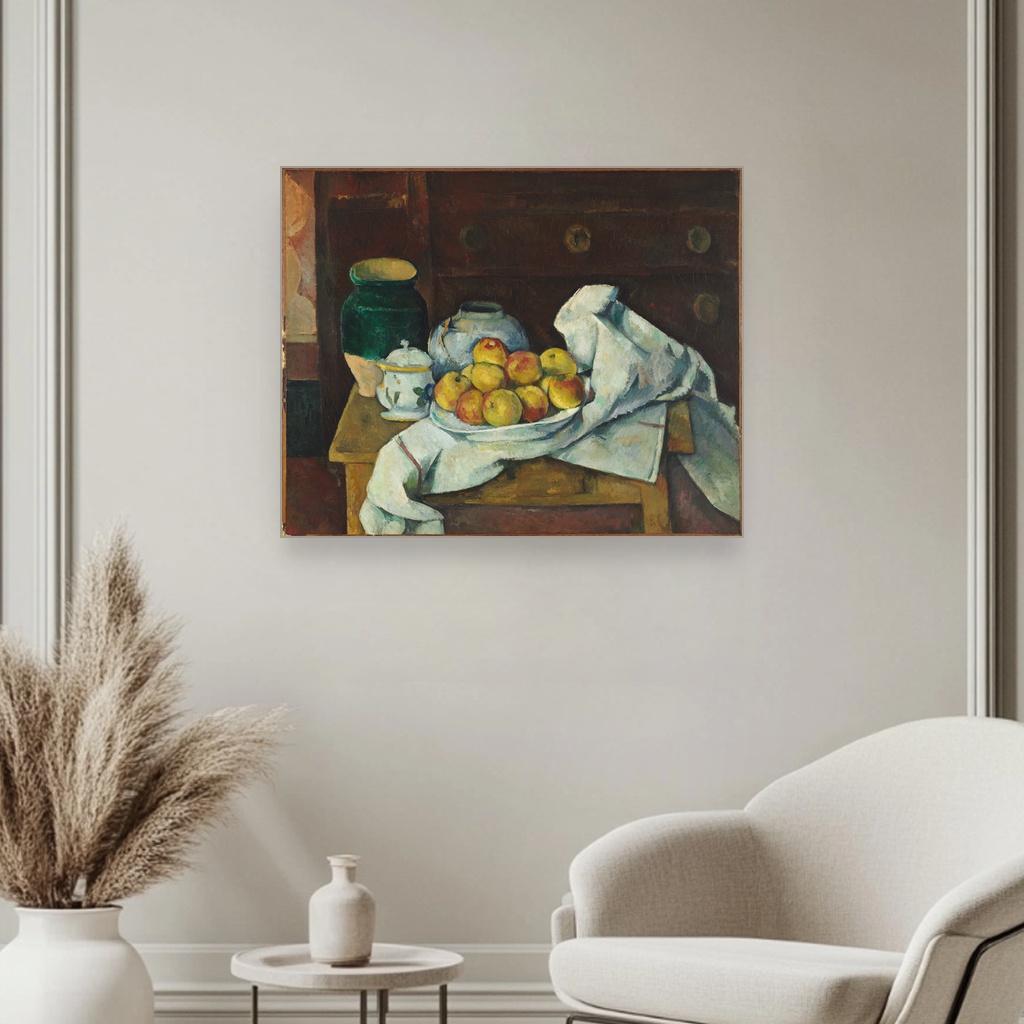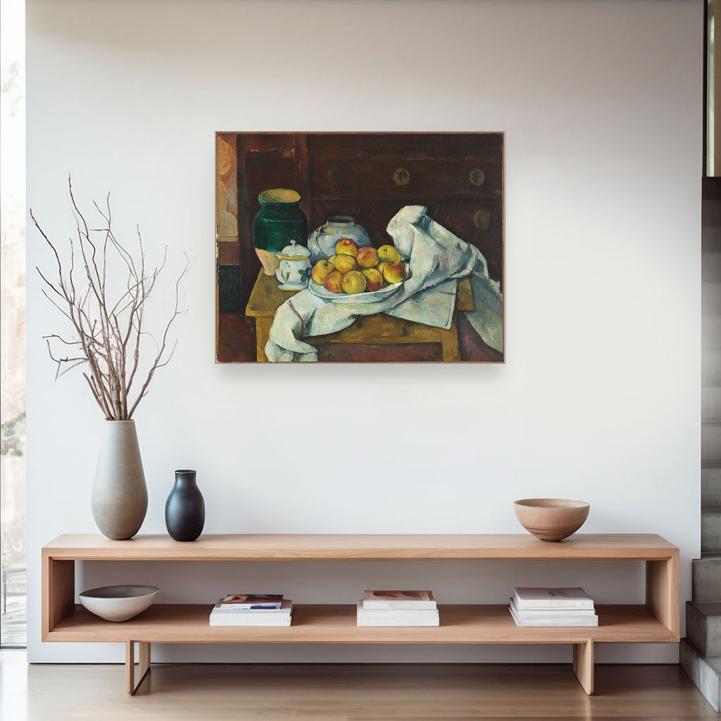 Mrtva priroda sa komodom, Paul Cézanne, Still Life with Commode, slika na platnu reprodukcija slike na platnu donosi jedinstvenu priliku da u svoj dom unesete duh postimpresionizma kroz delo jednog od najuticajnijih umetnika modernog doba.