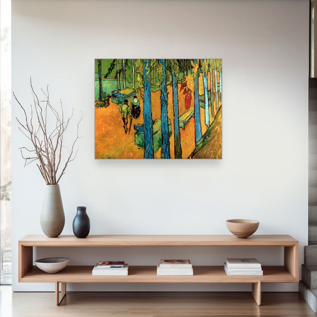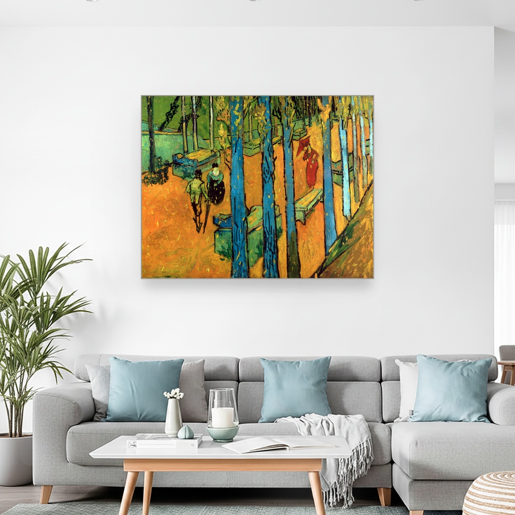 Ova canvas slika nastala je u jesenjem periodu kada je Van Gogh intenzivno istraživao prirodu kroz svoje prepoznatljive poteze četkice i jarke boje.