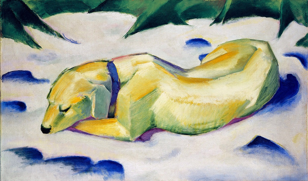 Pas koji leži na snegu, Franz Marc, Dog Lying in the Snow, slika na platnu daje jedinstvenu priliku da uđete u svet nemačkog ekspresionizma kroz prizmu jednog od njegovih najvažnijih predstavnika.