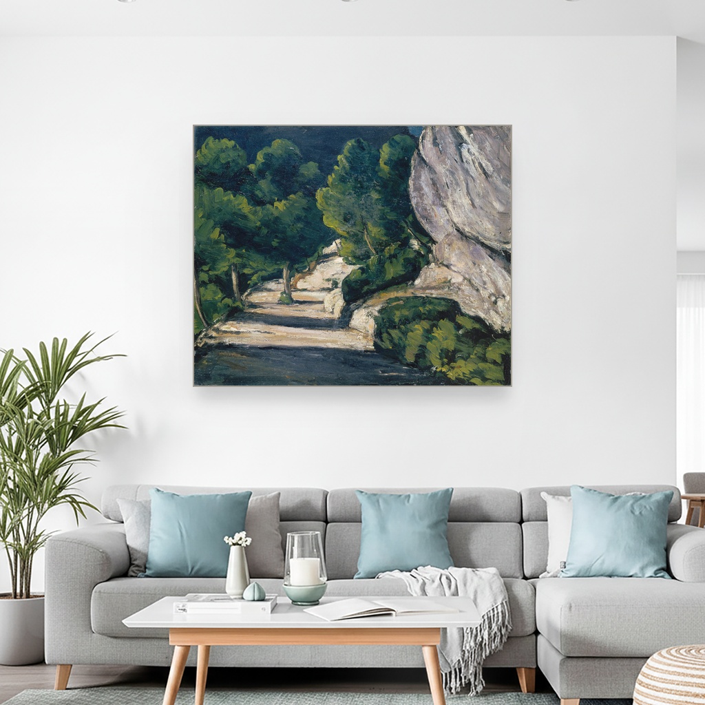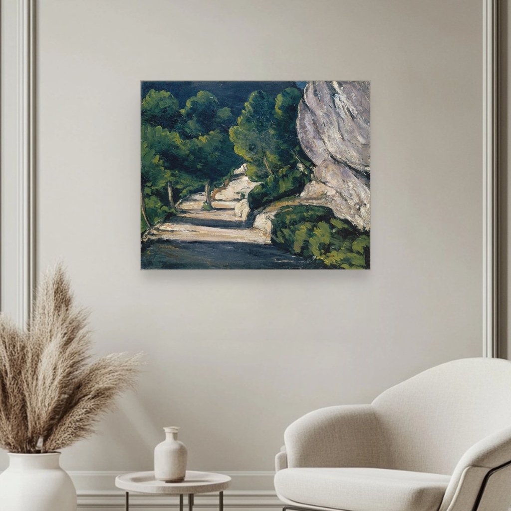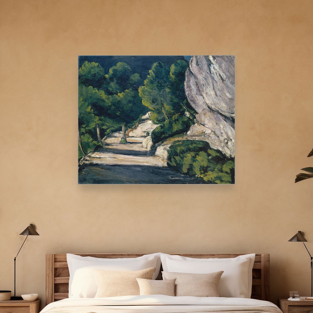 Pejzaž Sa Drvećem U Stenovitim Planinama, Paul Cézanne, Landscape Road with Trees in Rocky Mountains, slika na platnu reprodukcija slike na platnu donosi posebnu energiju i dubinu svakom prostoru.