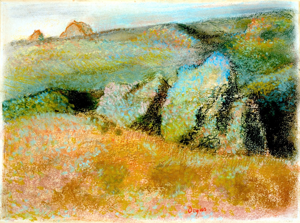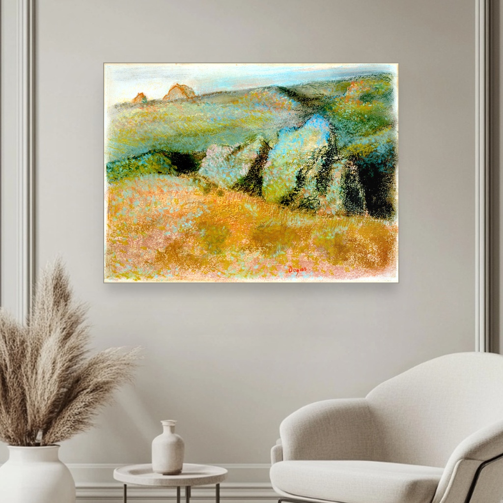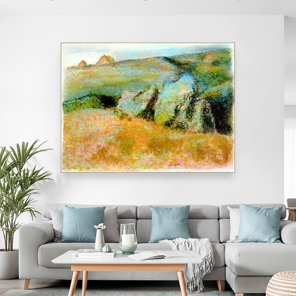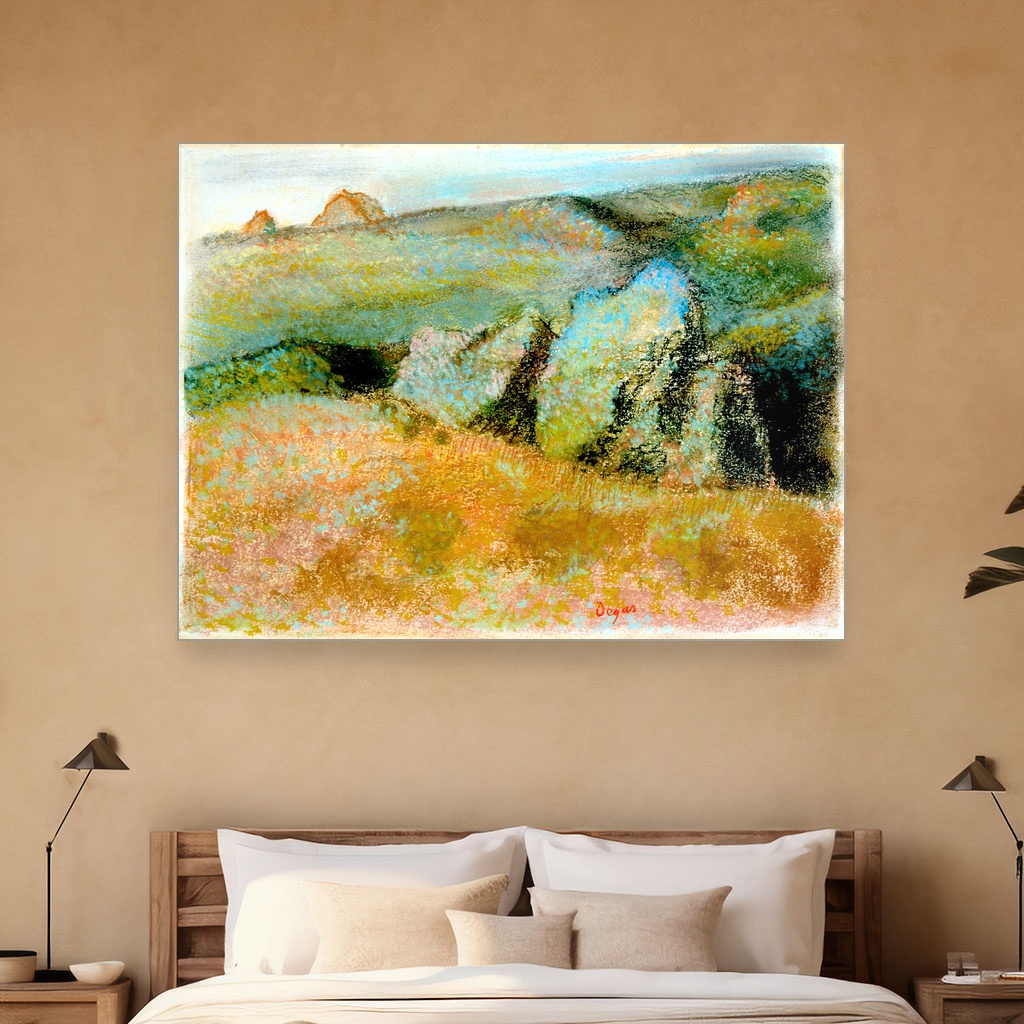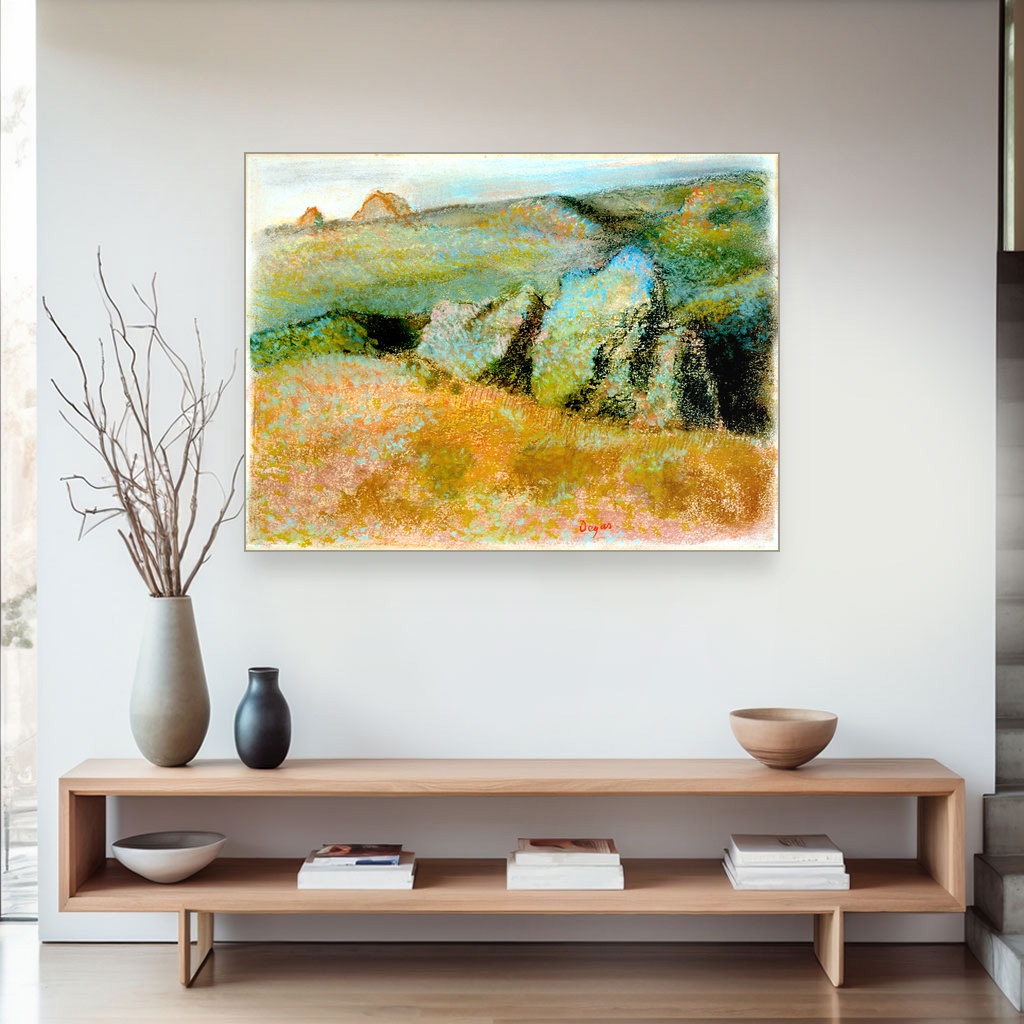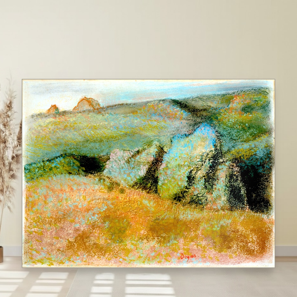 Pejzaž sa stijenama, Edgar Degas, Landscape with Rocks, slika na platnu reprodukcija slike na platnu pruža jedinstven uvid u umetnikov pogled na prirodu kroz prizmu impresionizma.