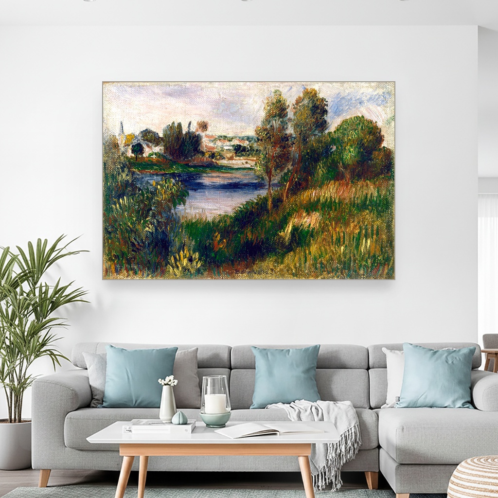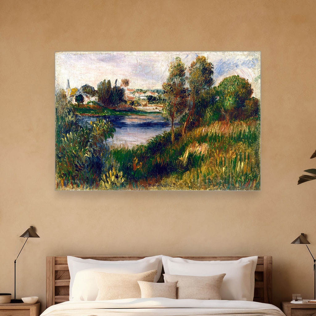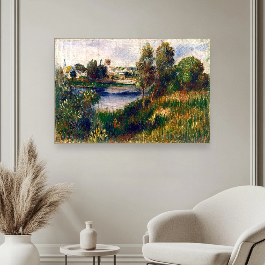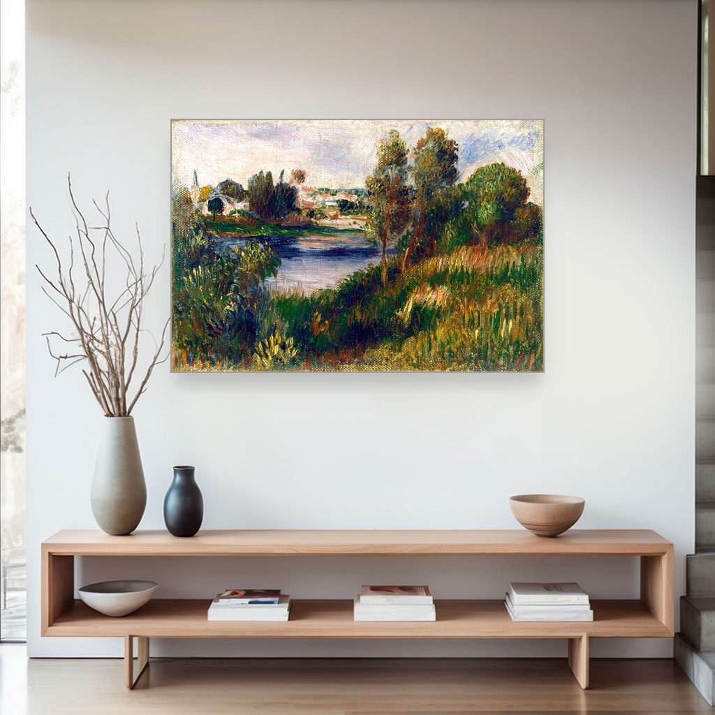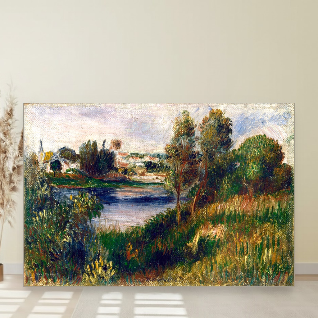 Pejzaž u Vétheuilu, Pierre-Auguste Renoir, Landscape at Vétheuil, slika na platnu reprodukcija slike na platnu otvara pred vas jedan od bisera impresionističkog slikarstva, koji nosi duh kasnog 19. veka.