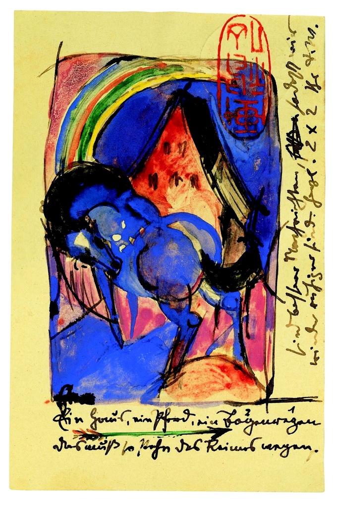 Plavi konj crvena kuća i duga, Franz Marc, Blue Horse Red House and Rainbow, slika na platnu
