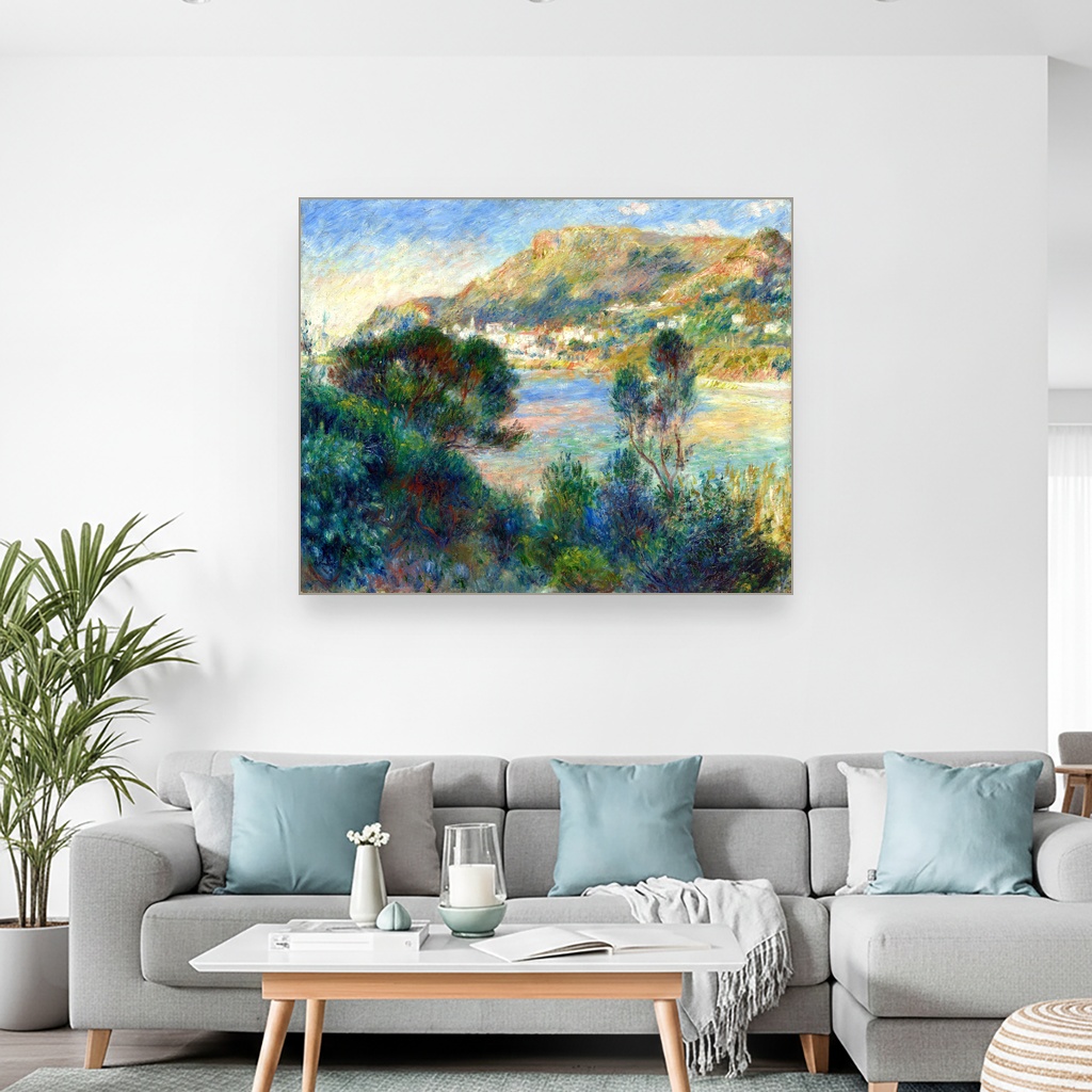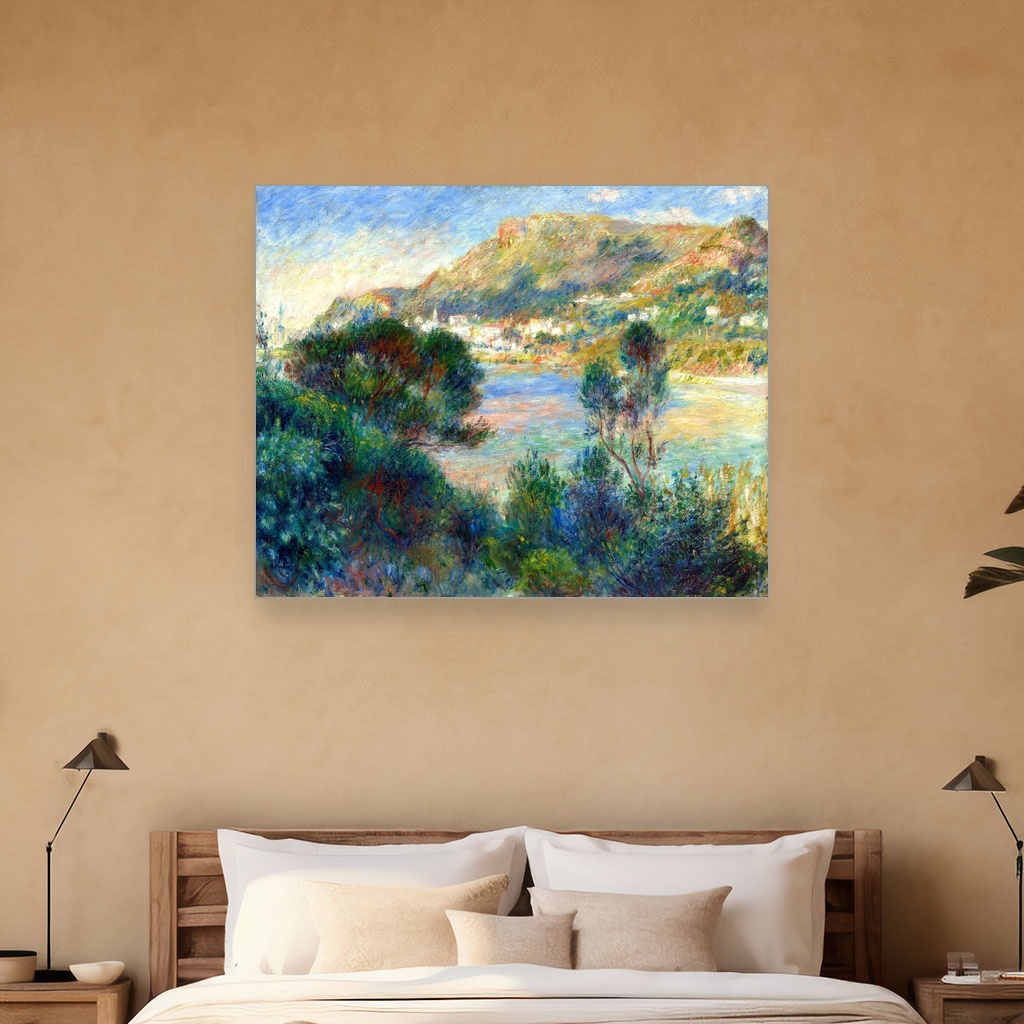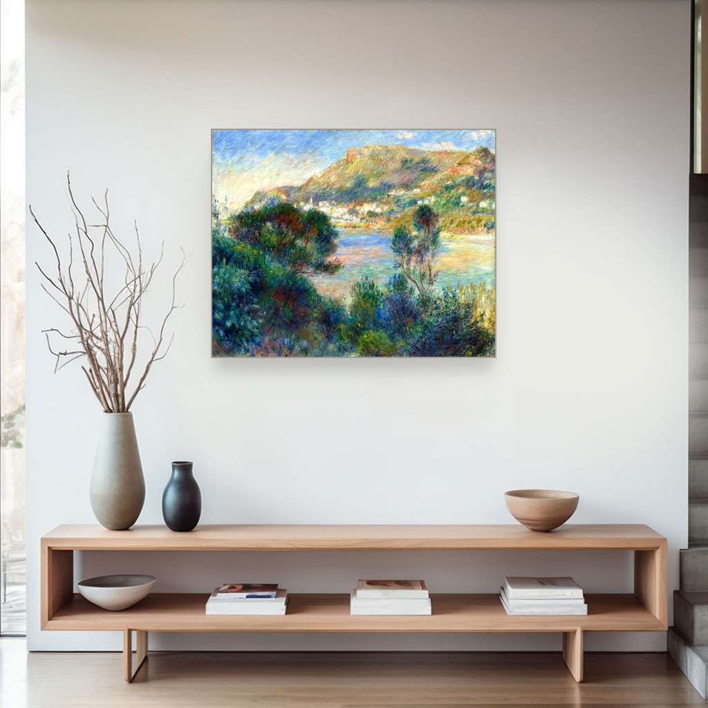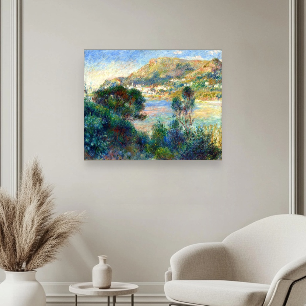 Kreirana u prvoj dekadi 20. veka, ova umetnička reprodukcija na platnu osvetljava pejzaž južne Francuske kroz mekoću Renoirovog kista i njegovu ljupku paletu boja.