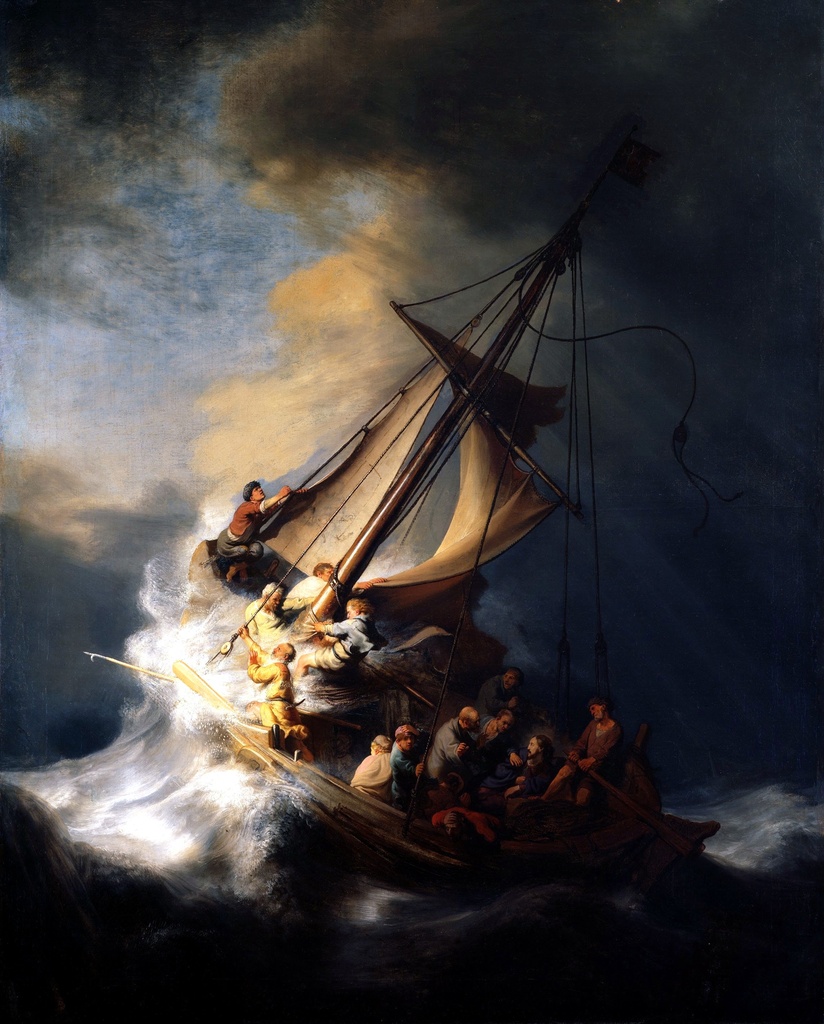 Hristos u oluji na Galilejskom moru, Rembrandt van Rijn, Christ in the Storm on the Sea of Galilee, slika na platnu, predstavlja dramatični trenutak u umetničkoj istoriji koji je večito inspirisao brojna dela.
