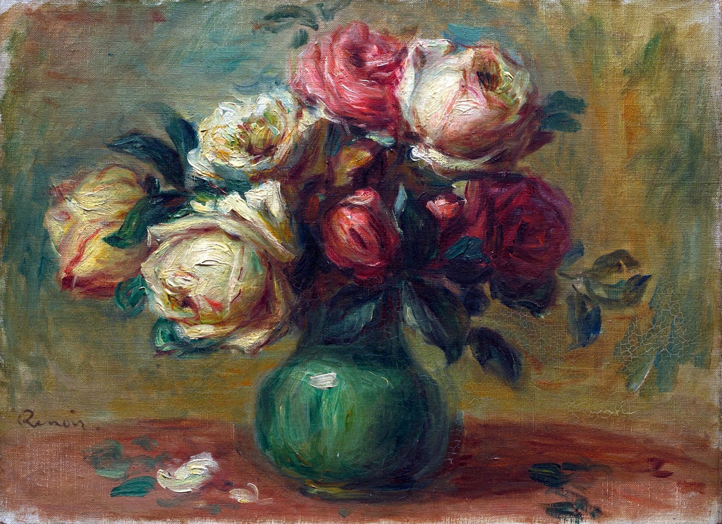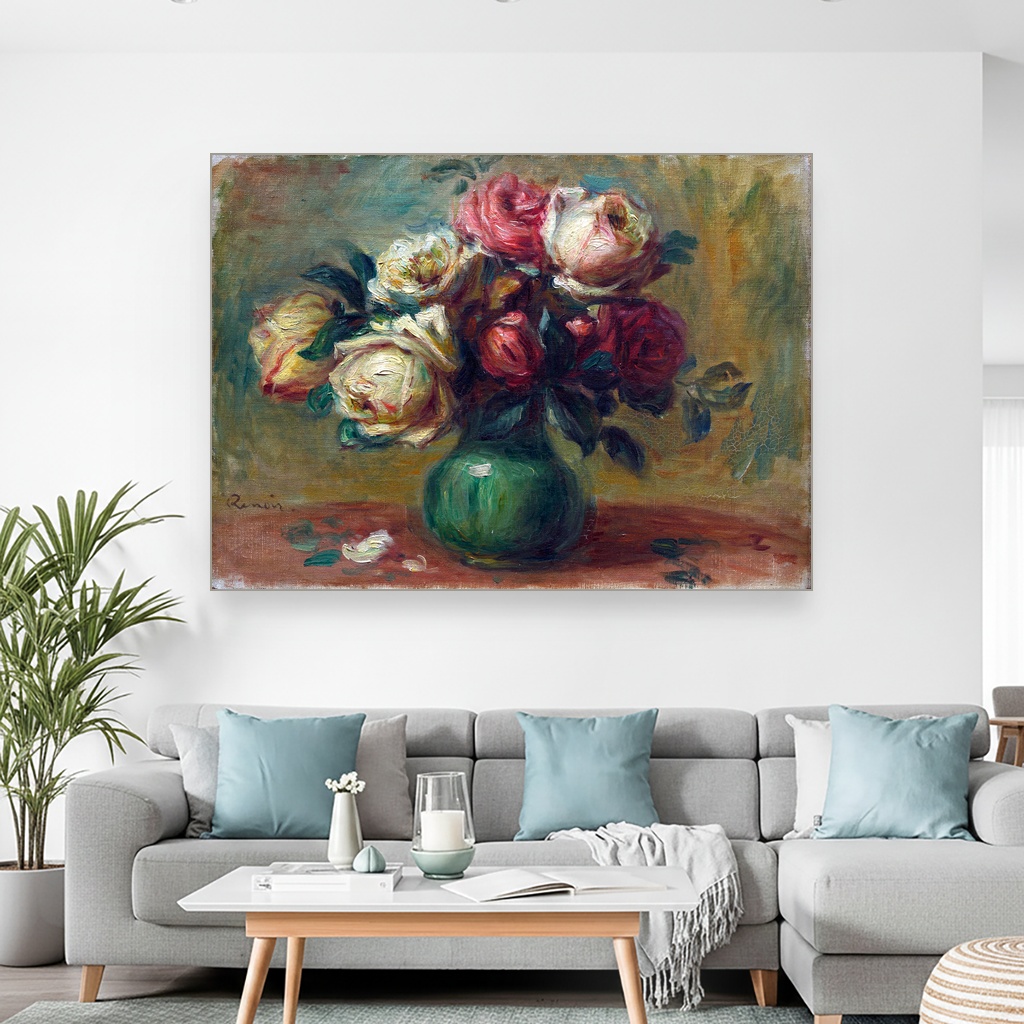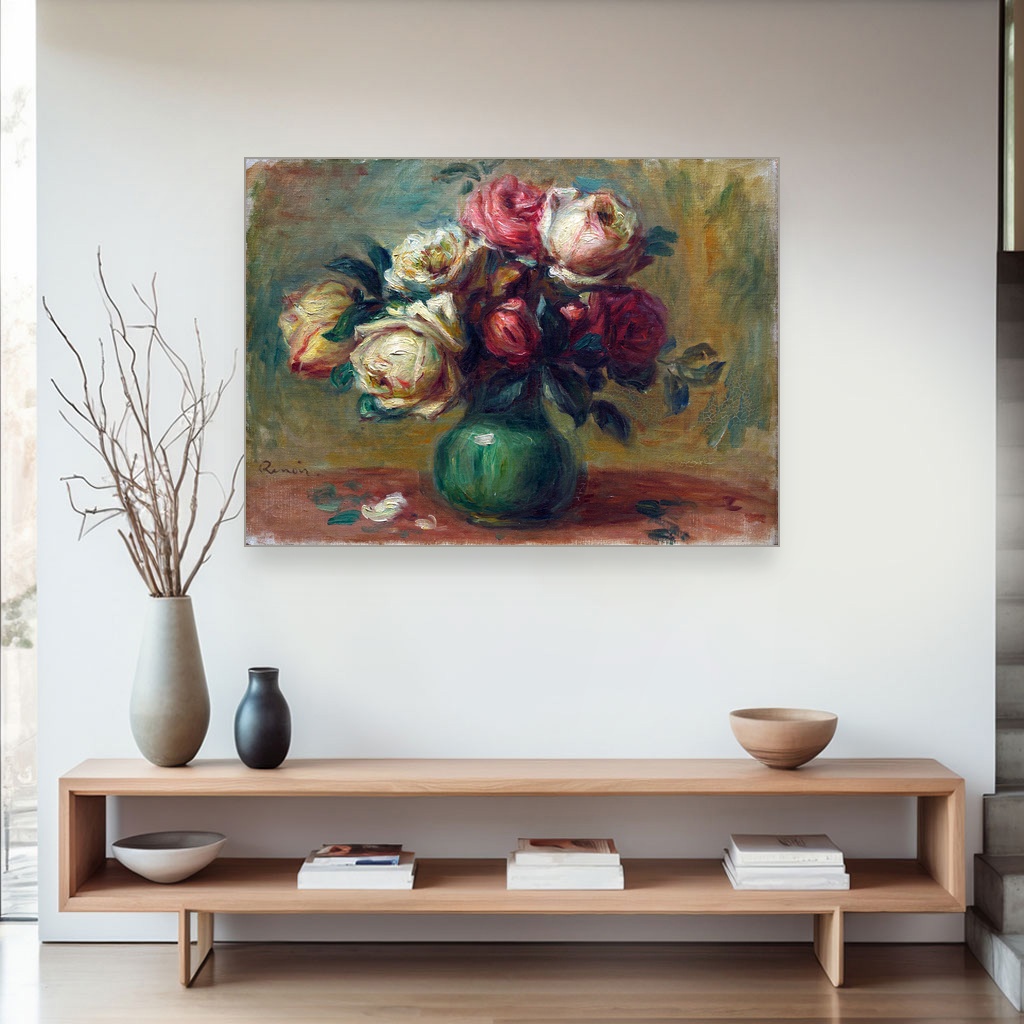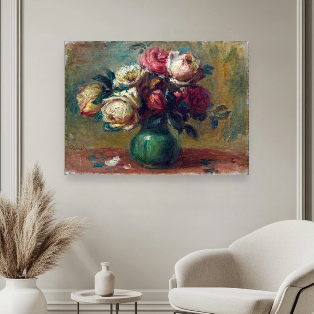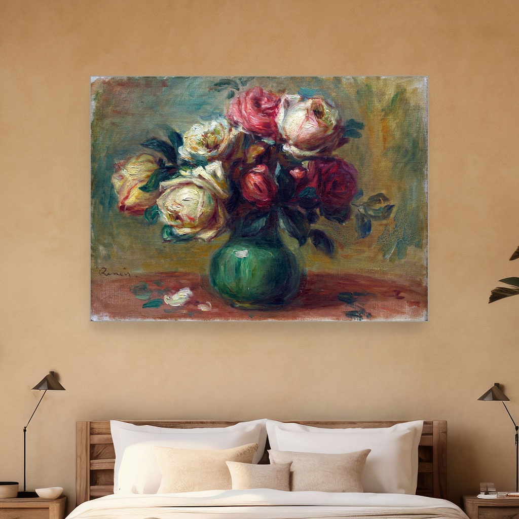 Ruze u vazi, Pierre-Auguste Renoir, Roses in a Vase, slika na platnu reprodukcija slike na platnu unosi duh impresionizma kroz nežnu paletu i mekoću poteza kista.