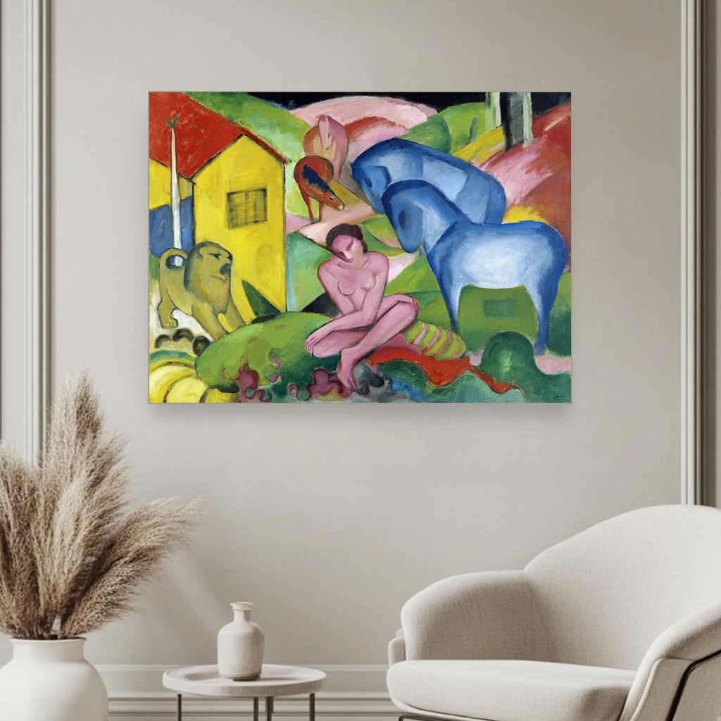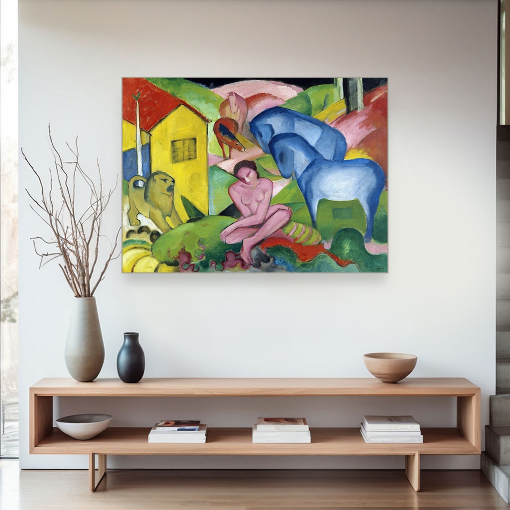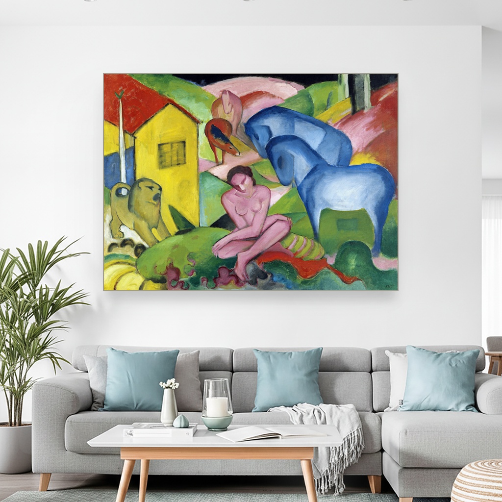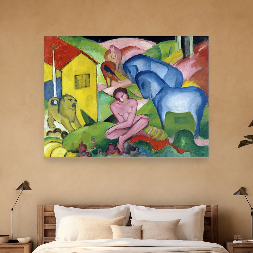 Zidna umetnost velikog formata kao što je San, Franz Marc, The Dream, unosi karakter i dubinu u enterijere sa modernim ili eklektičnim stilom.