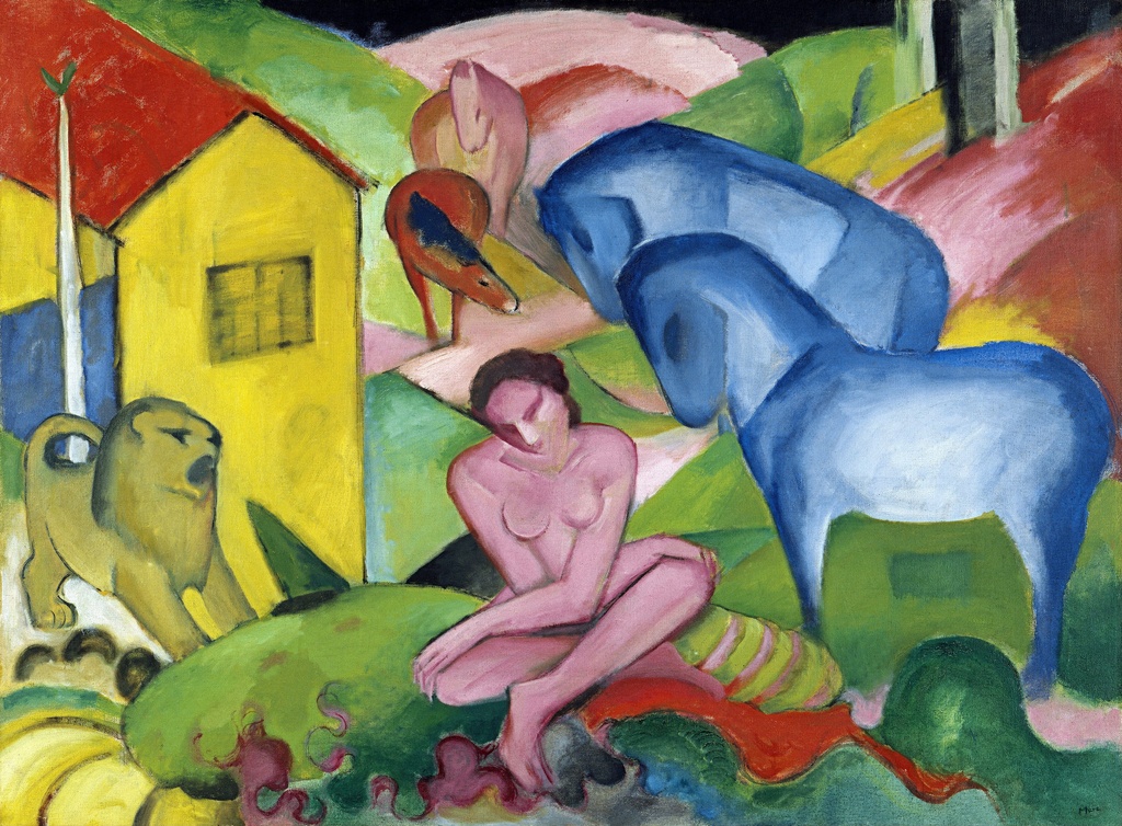 San, Franz Marc, The Dream, slika na platnu pruža jedinstven spoj boja i emocija koje odišu dubinom umetničkog izraza.