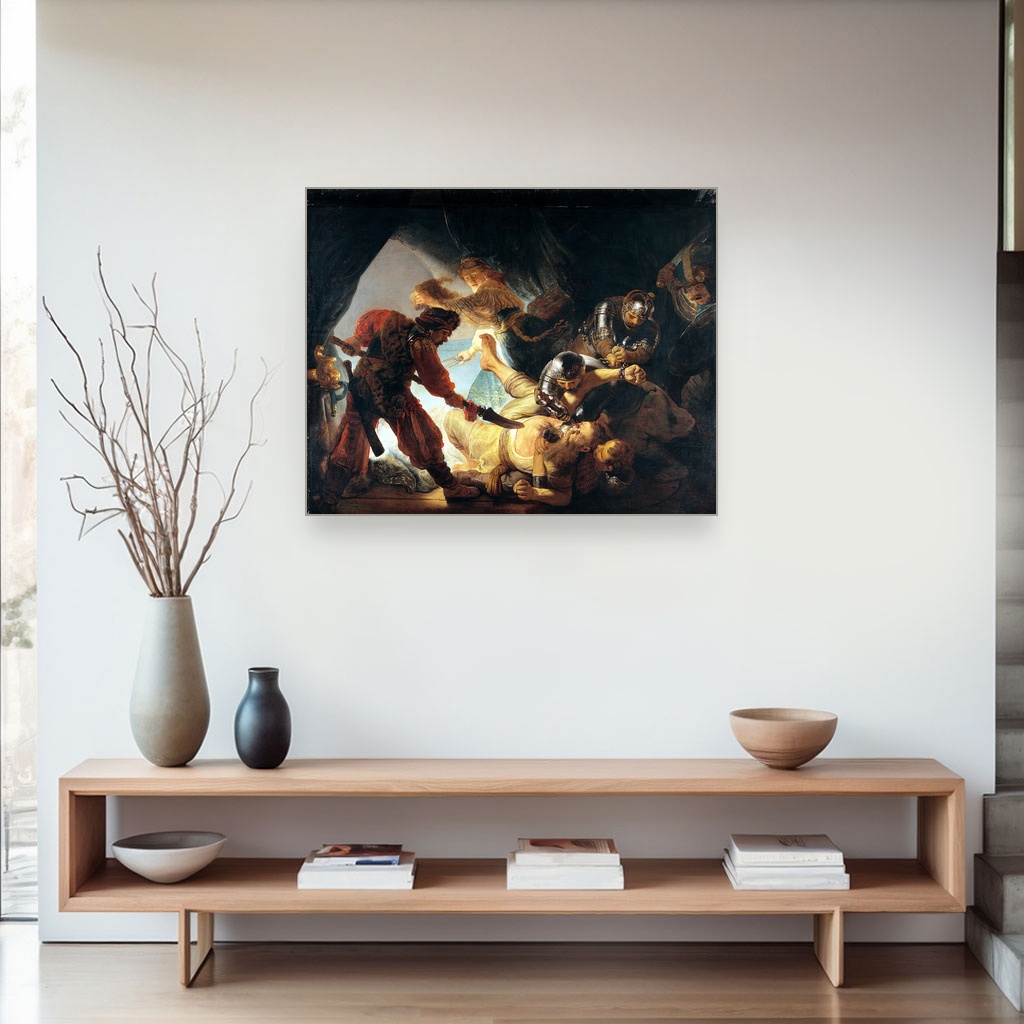 Samsunovo slepilo, Rembrandt Harmens van Rijn, The Blinding of Samson, slika na platnu reprodukcija slike na platnu donosi jednu od najsnažnijih biblijskih scena izraženih kroz umetnički pravac slika na platnu koji je oblikovao remek-dela zlatnog doba holandske umetnosti.