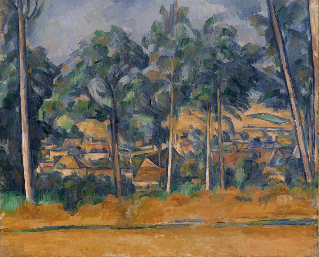 Selo kroz drveće, Paul Cézanne, Village through the Trees, slika na platnu reproducira jedan od najprepoznatljivijih trenutaka u razvoju moderne umetnosti.