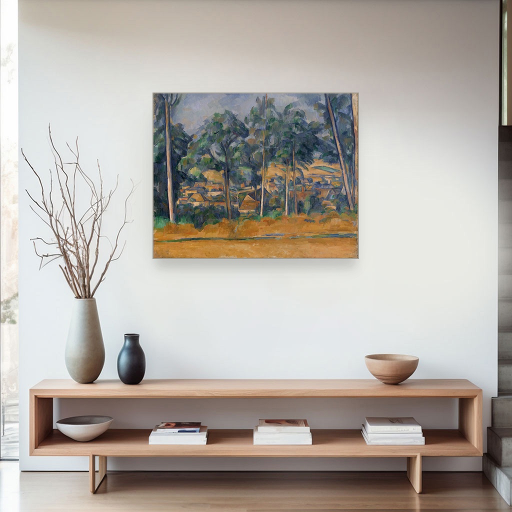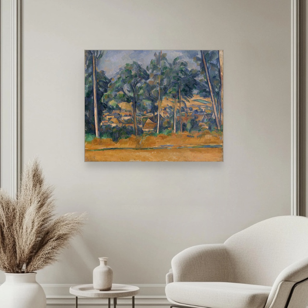Uronite u tišinu sela koje se nazire kroz guste krošnje, gde svaka boja i potez donose osećaj mira i prirodne harmonije. Ova reprodukcija Paula Cézannea savršeno će oplemeniti dnevni boravak ili radni kutak, stvarajući prostor za inspiraciju i odmor. Vrednost ovog dela leži u izuzetnoj teksturi platna i vernoj interpretaciji majstora postimpresionizma, koji unosi život u svaki detalj.