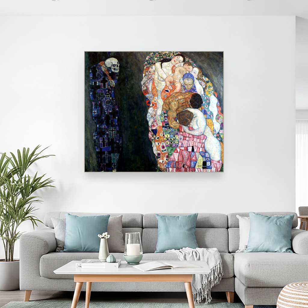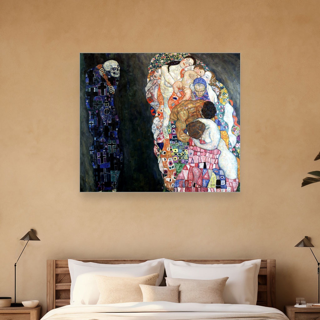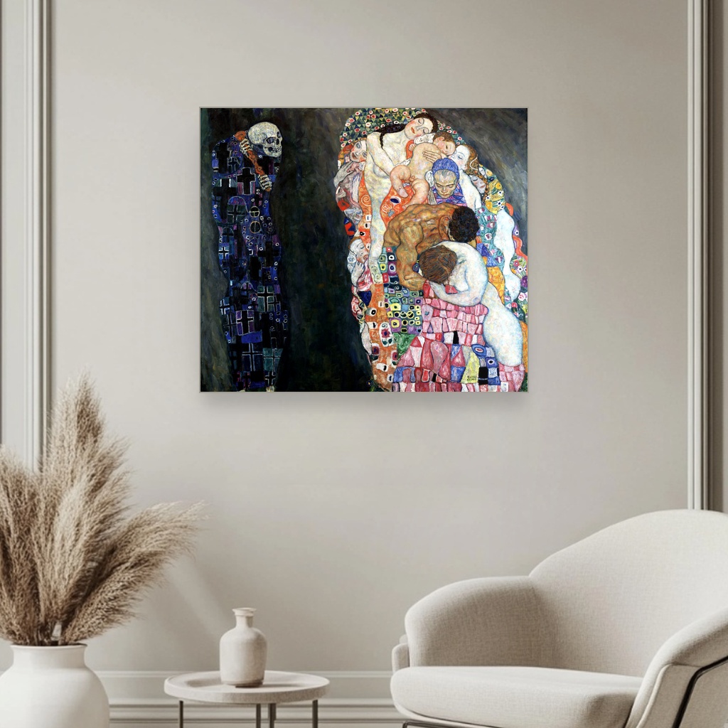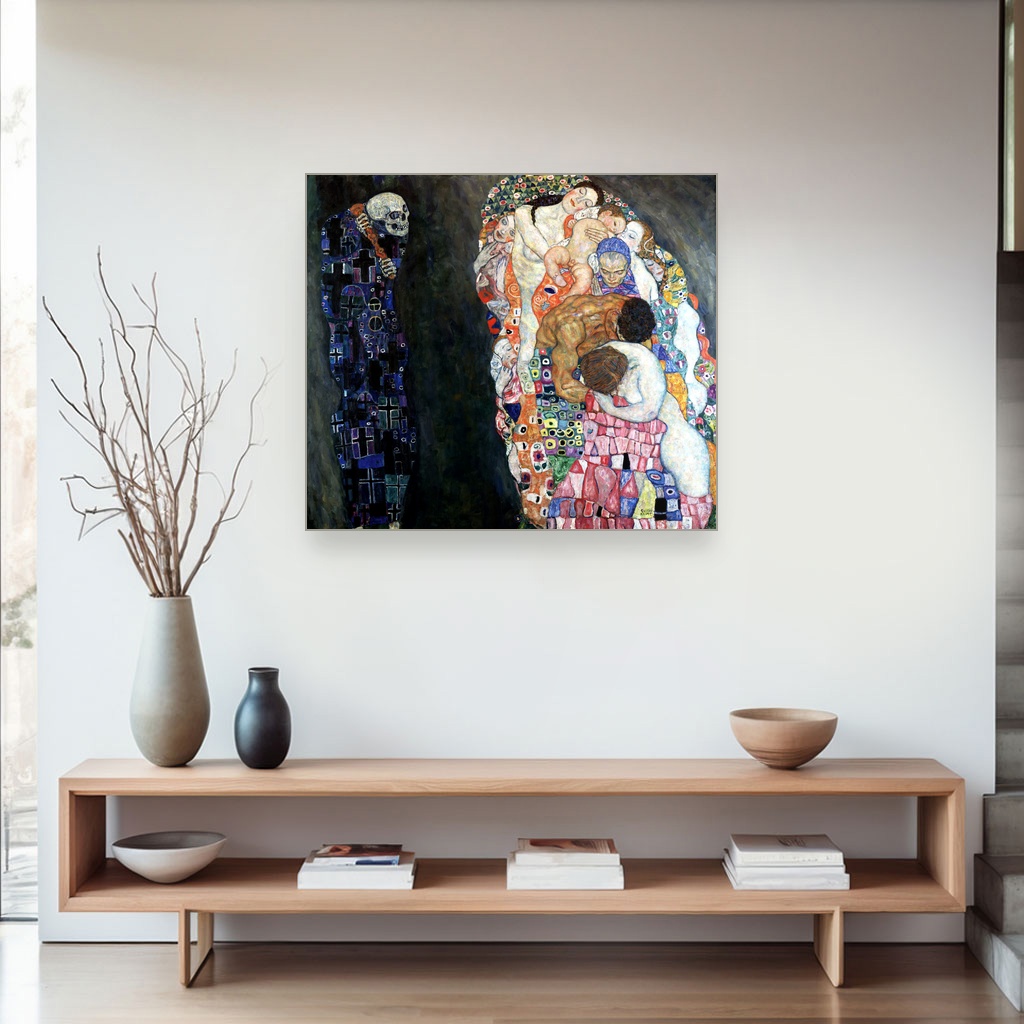Veliki format slike za zid omogućava da Smrt i život postane dominantan detalj u prostoru, bilo da je reč o dnevnoj sobi ili hodniku.