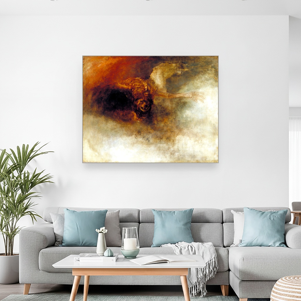 Turner je poznat po svojoj sposobnosti da koristi svetlost i boju kako bi stvorio gotovo mistične pejzaže i prizore, a ova reprodukcija slike na platnu verno prenosi njegovu magiju i emotivnu snagu.