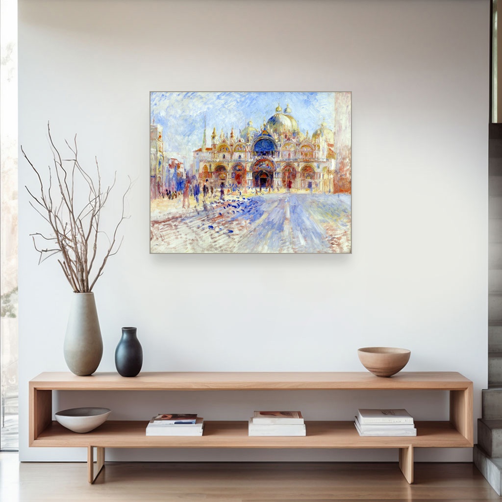 Ovo umetničko delo nastalo je u periodu kada je Renoir istraživao svetlost i atmosferu urbanih pejzaža, hvatajući živost venecijanskog trga kroz meke, razigrane poteze četkice.