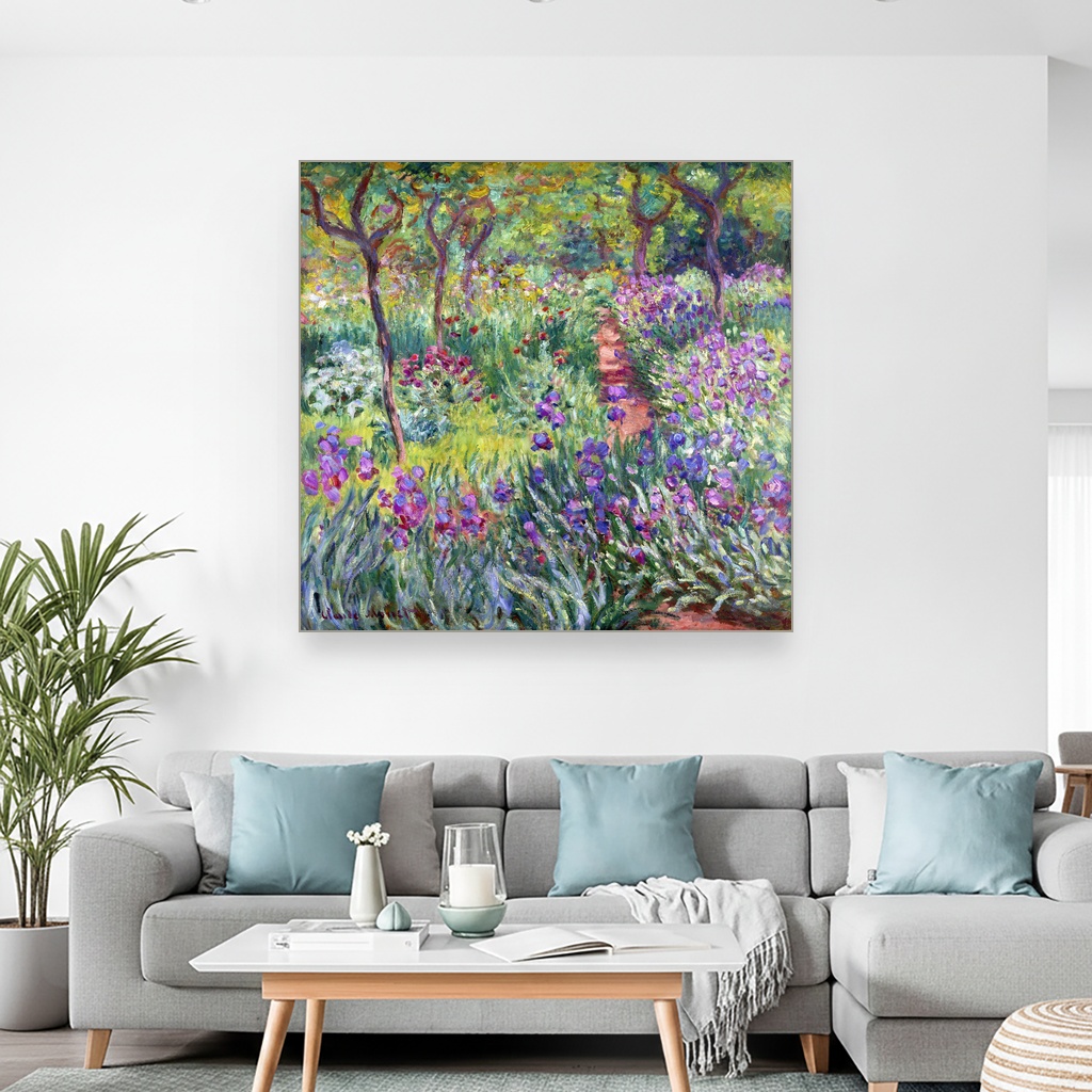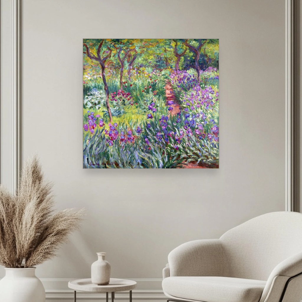 Umetnikov vrt u Živerni, Klod Mone, The Artists Garden in Giverny, slika na platnu predstavlja fascinantan prikaz jednog od najlepših pejzaža impresionizma, ovekovečen u obliku slike za zid koja oduševljava svojim detaljima i bojama.