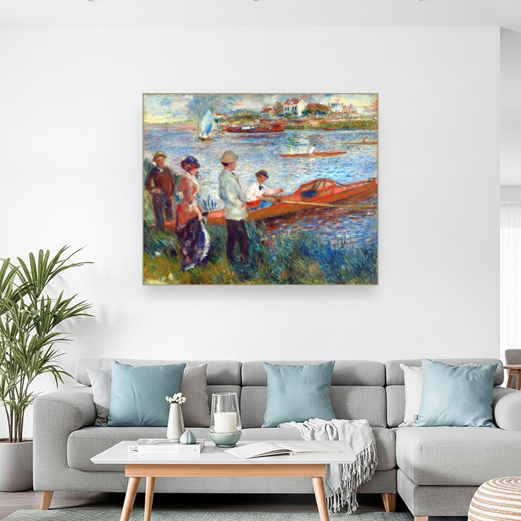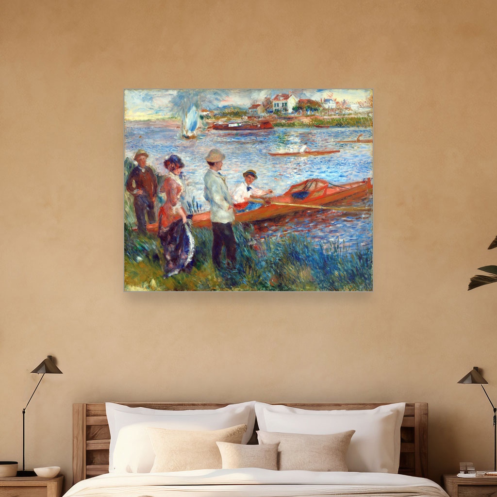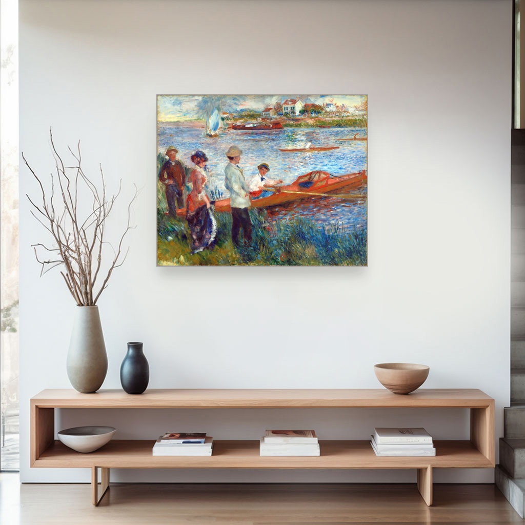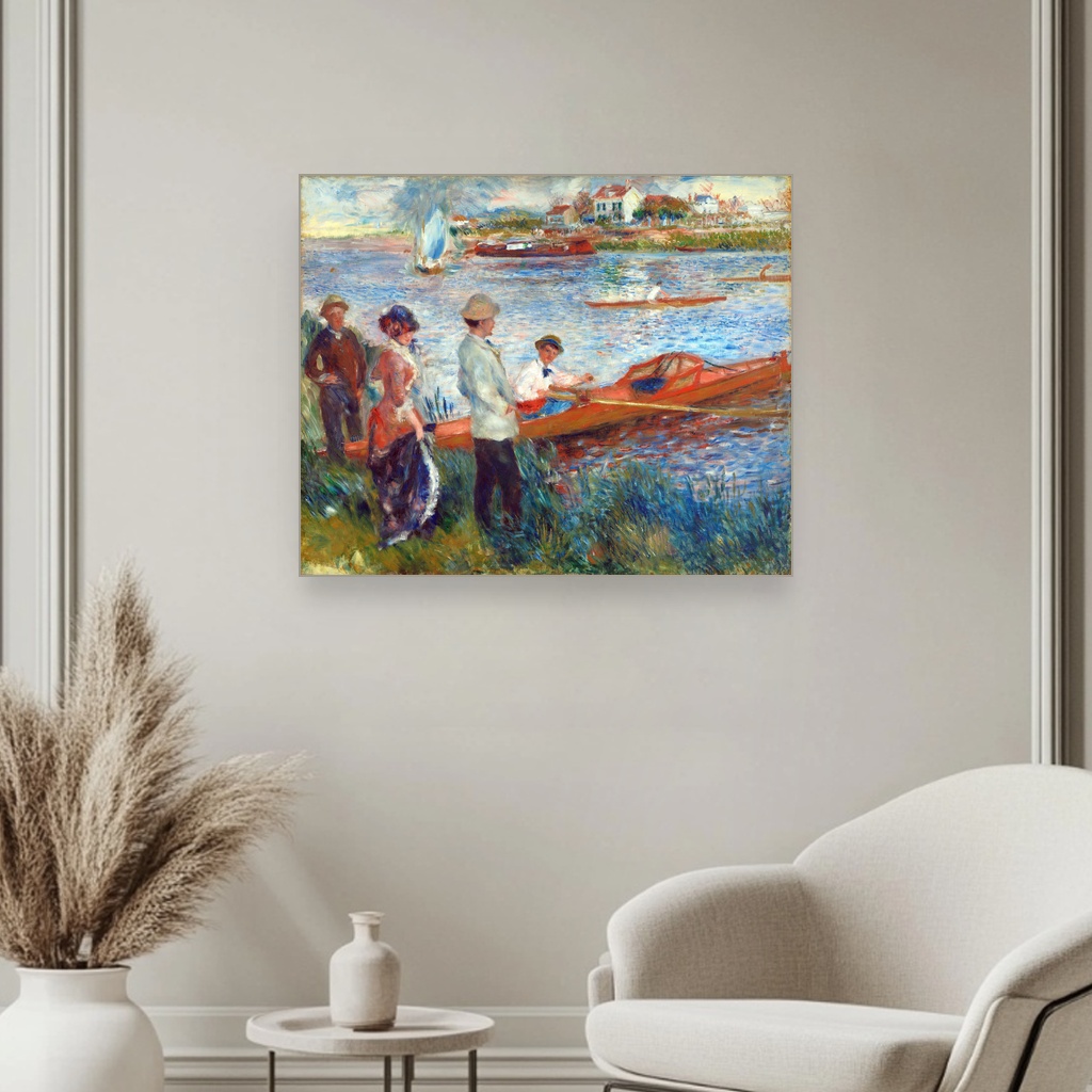 Ovaj prikaz veslača na reci Seine nastao je u periodu kada je Renoir istraživao svetlosne efekte i atmosferu letnjih dana na otvorenom, hvatajući šarm spontanih trenutaka svakodnevnog života.