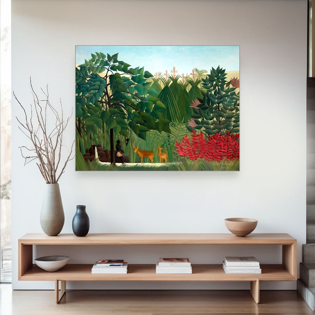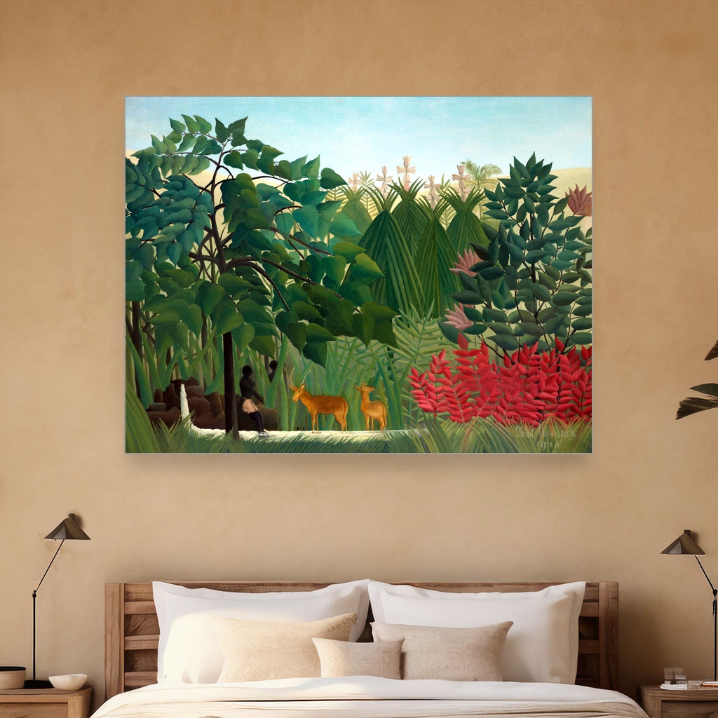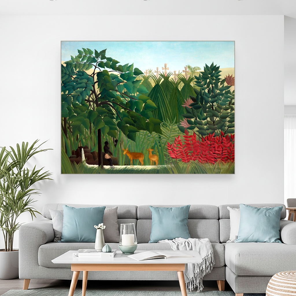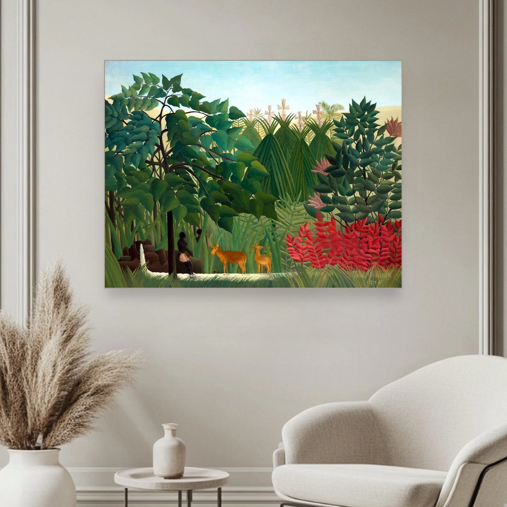 Ova dekorativna slika na platnu savršeno odražava umetnički pravac slike na platnu koji je Rousseau oblikovao, unoseći elemente fantazije i stvarnosti u harmoničan sklad.