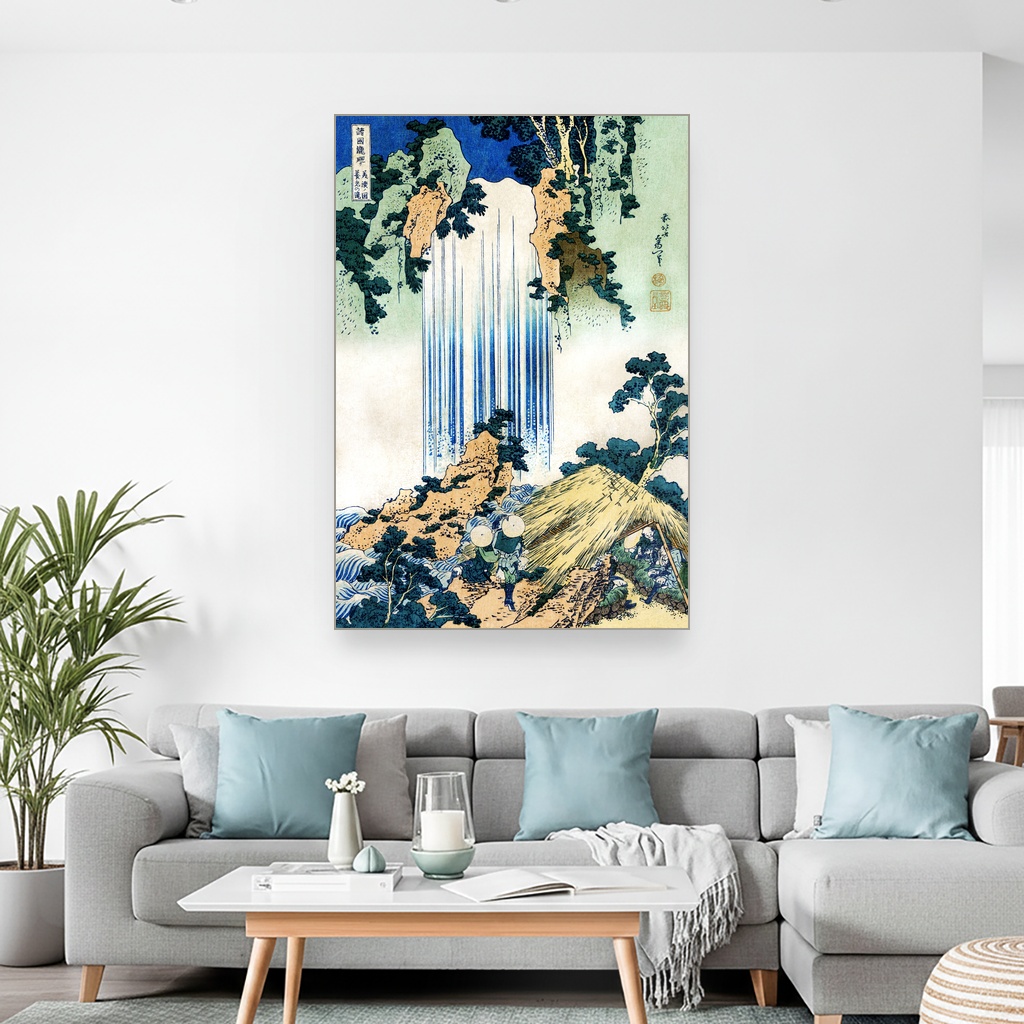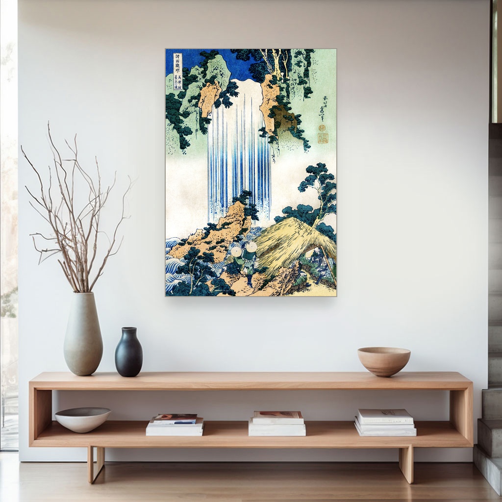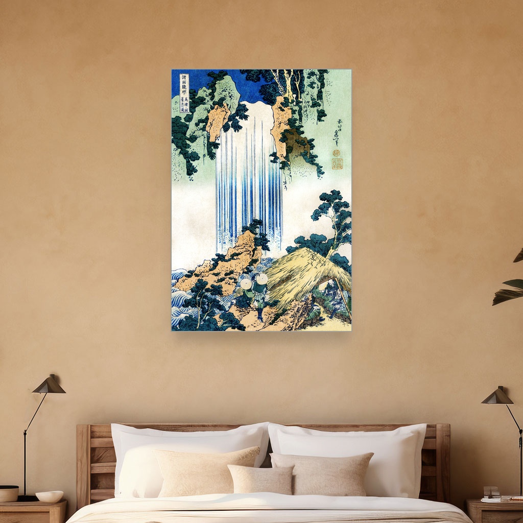 Vodopad Joro u provinciji Mino, Katsushika Hokusai, Yoro Waterfall in Mino Province, slika na platnu predstavlja umetničku reprodukciju na platnu koja nas vraća u doba Edo perioda, kada su japanski umetnici poput Hokusaja stvarali dela koja su spoj prirode i duhovnosti.