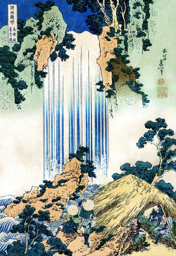 Iako autor ovog dela ostaje nepoznat, stil koji podseća na Hokusajeve drvoreze donosi jedinstvenu zidnu umetnost koja slavi energiju i smirenost vodopada u planinskom ambijentu.