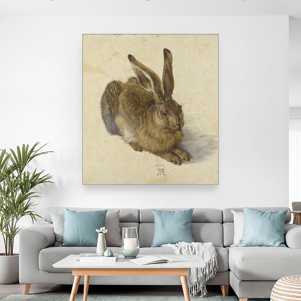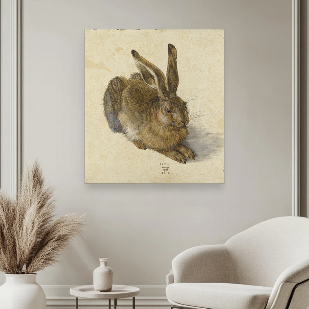 Veliki format slike za zid ističe svaki detalj zeca i daje prostor da umetnički izraz zaživi u punom sjaju.