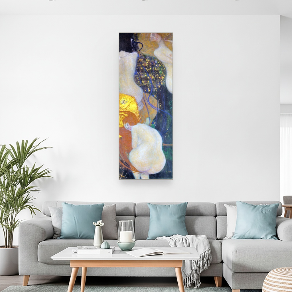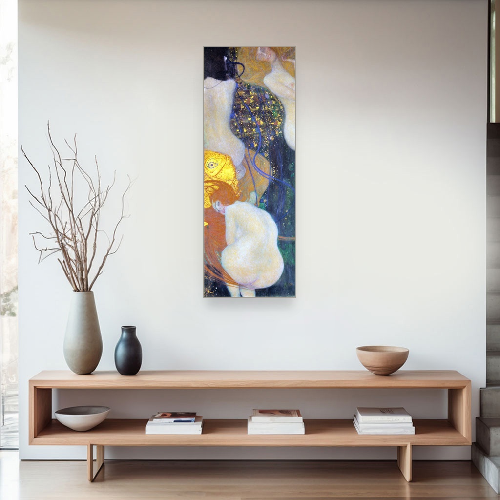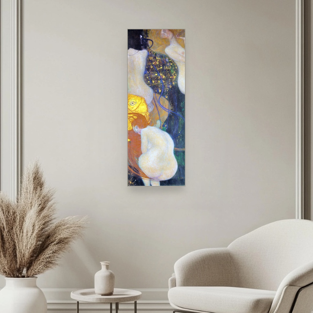 Inspirisana Klimtovim originalnim delima, ova štampa na platnu osvetljava prostor svojom toplinom i misterioznom lepotom, podsećajući na zlatno doba bečke umetnosti kraja 19. i početka 20. veka.